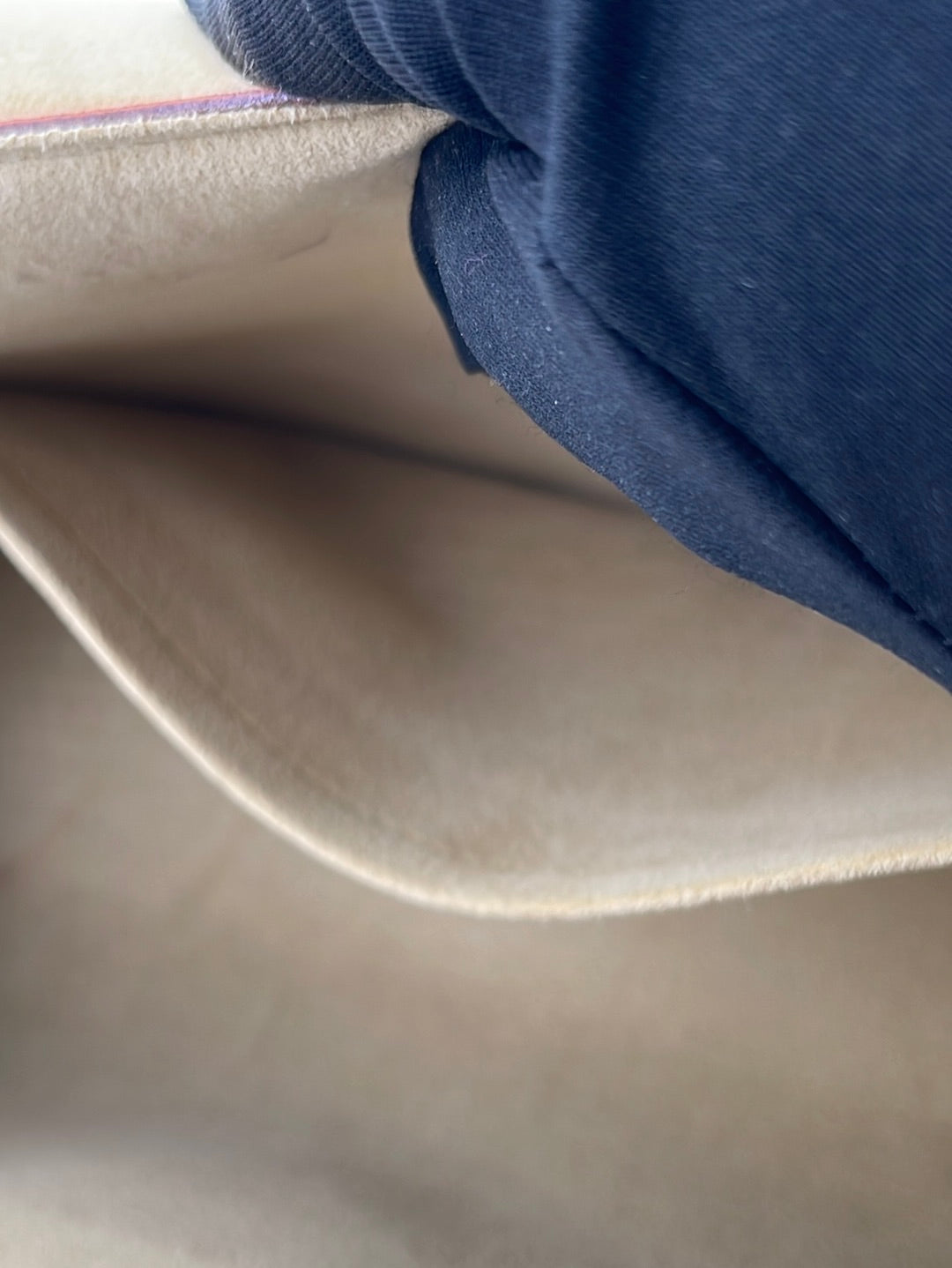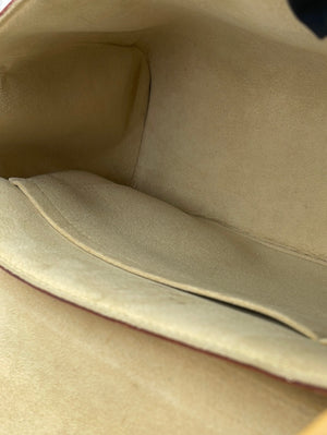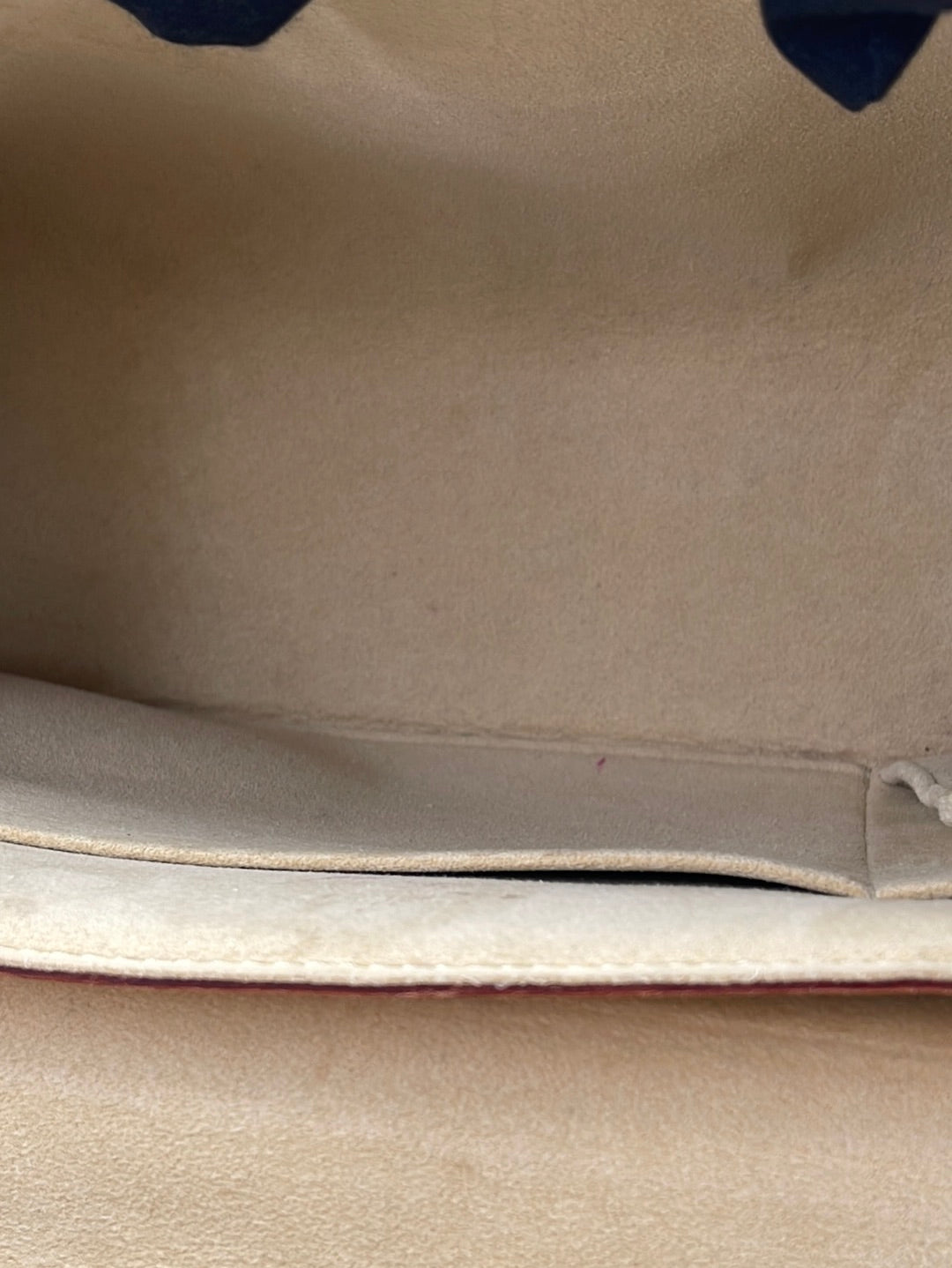 PRELOVED - Good Overall Vintage Condition! Exterior leather in good condition. Lower leather on right side has moisture spots. Interior has light wear with a small pen mark. See photos for details.