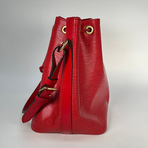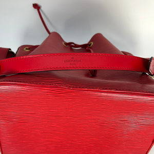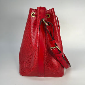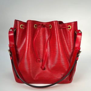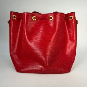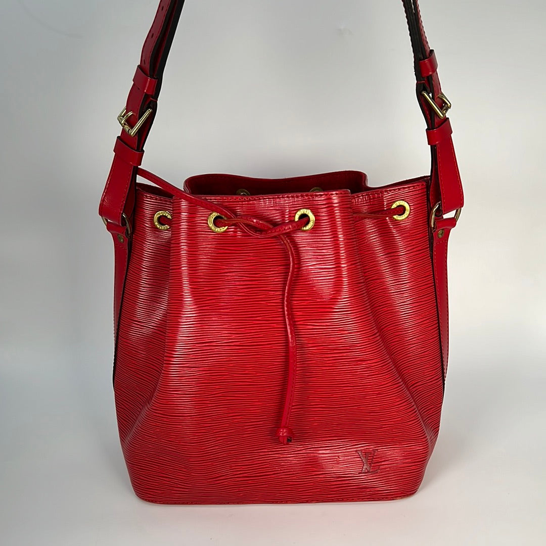 Vintage Louis Vuitton Petite Noe Red Epi Shoulder Bag This is a timeless and favored bag that will never go out of style. It was originally created in 1932 to carry five bottles of Champagne.