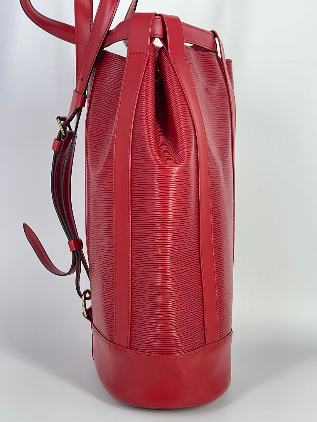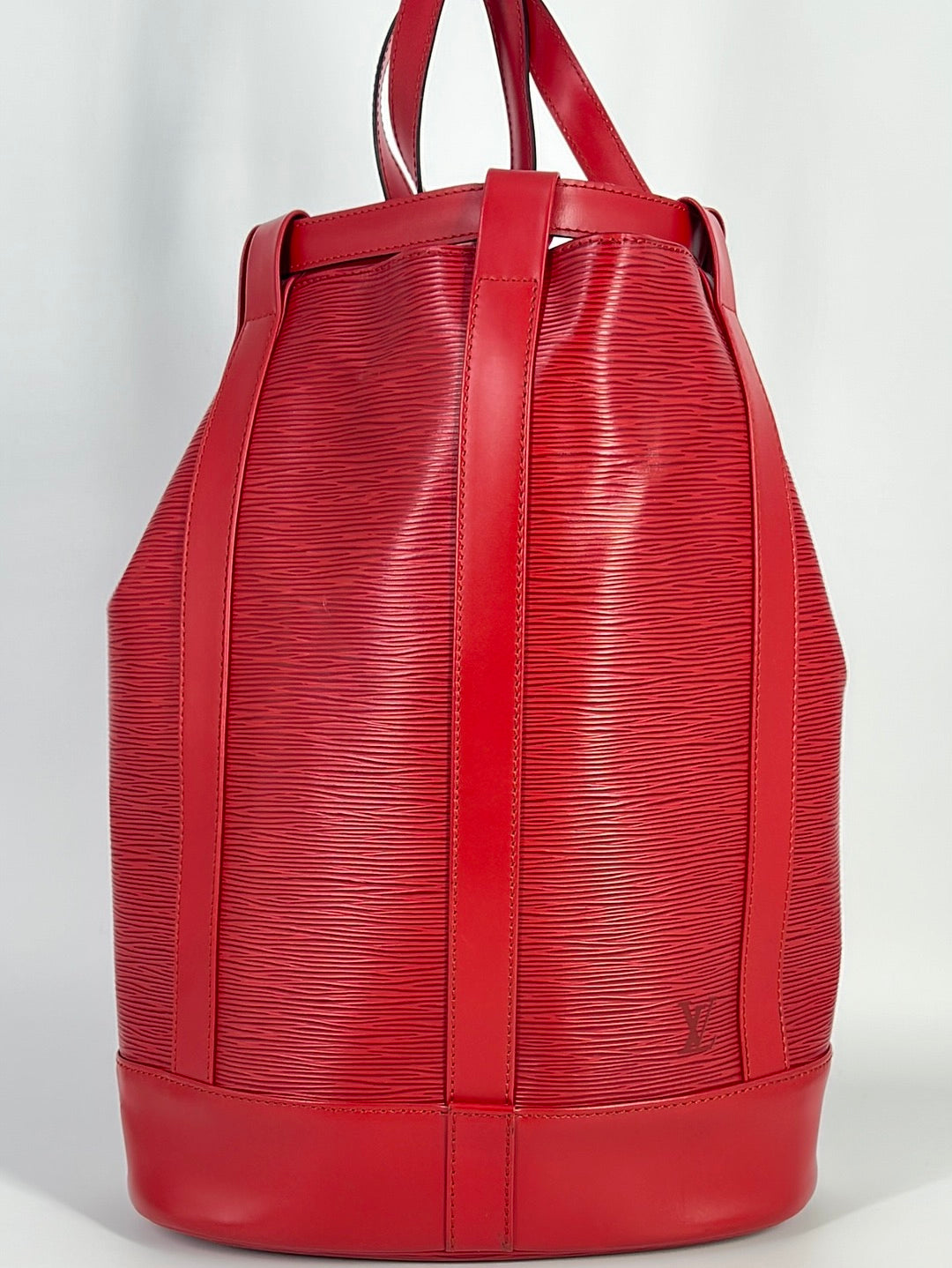 PRELOVED Authentic Louis Vuitton Randonnee PM Red Epi Bag. This ultra rare bag features a unique design with a spacious interior that can be worn on shoulder or as a backpack.
