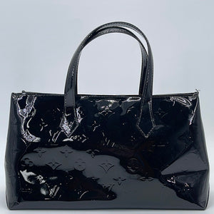 Preloved Louis Vuitton Black Monogram Vernis Wilshire PM Pomme d'amour Tote Bag