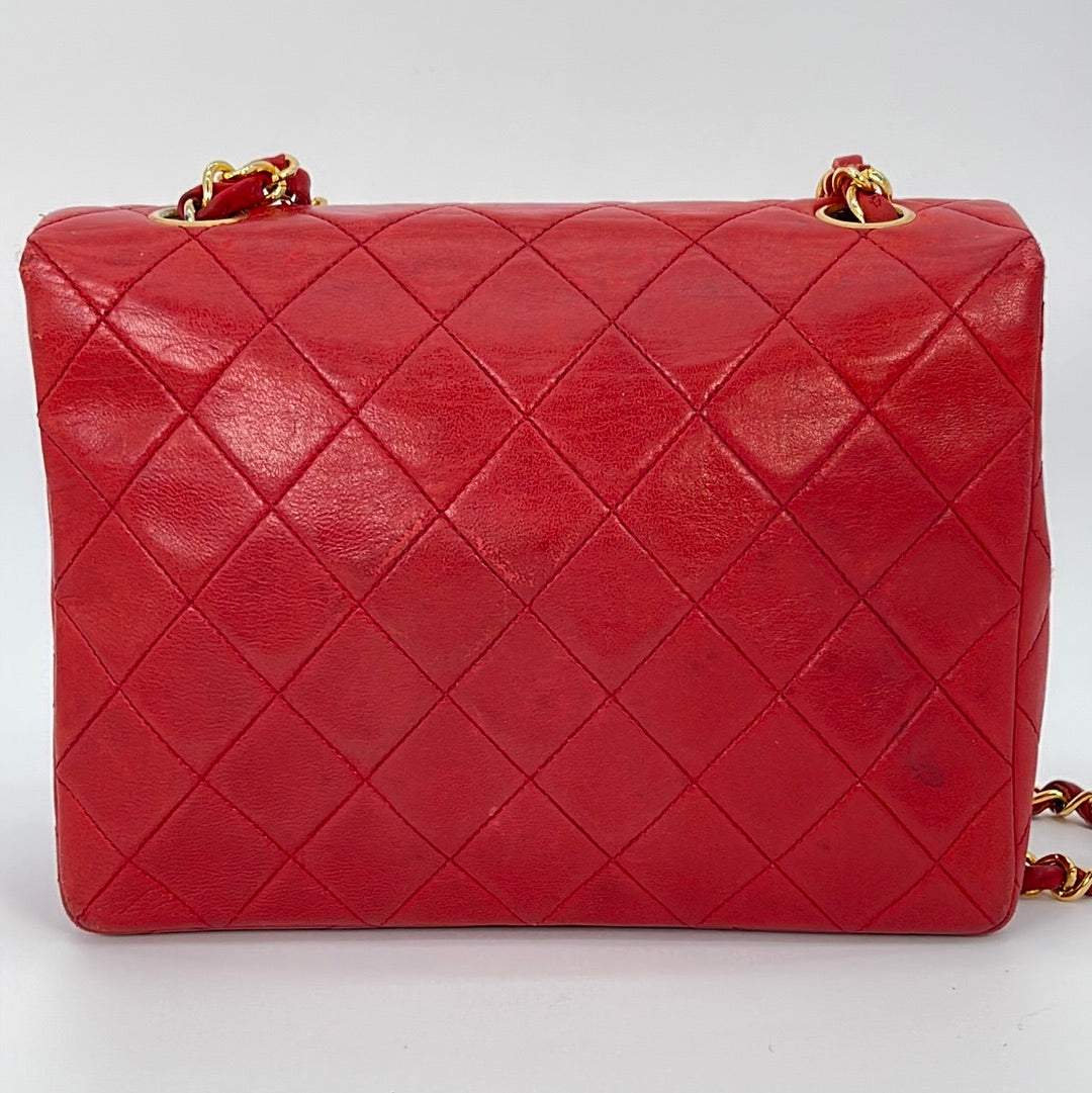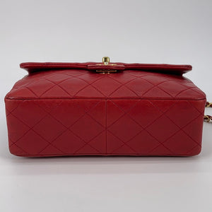 Vintage Rare CHANEL Red Lambskin Small Single Flap Square Bag