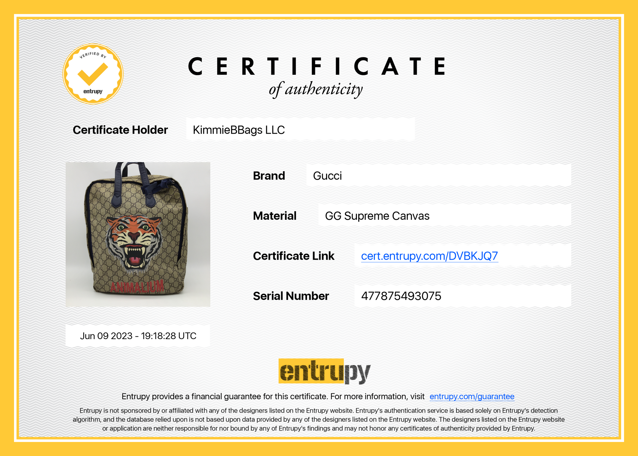 Entrupy letter of Authenticity!