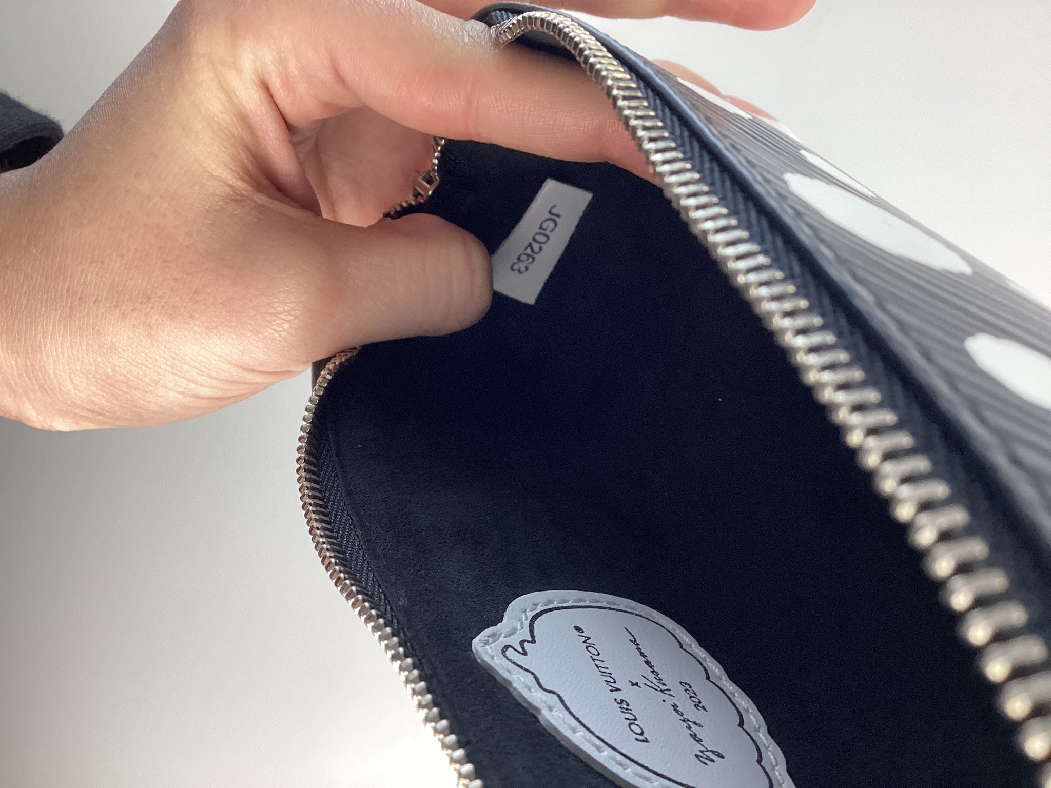 (LIKE NEW) Louis Vuitton Kusama Black Epi Pencil Pouch. This pencil case features an epi canvas body and zip closure.