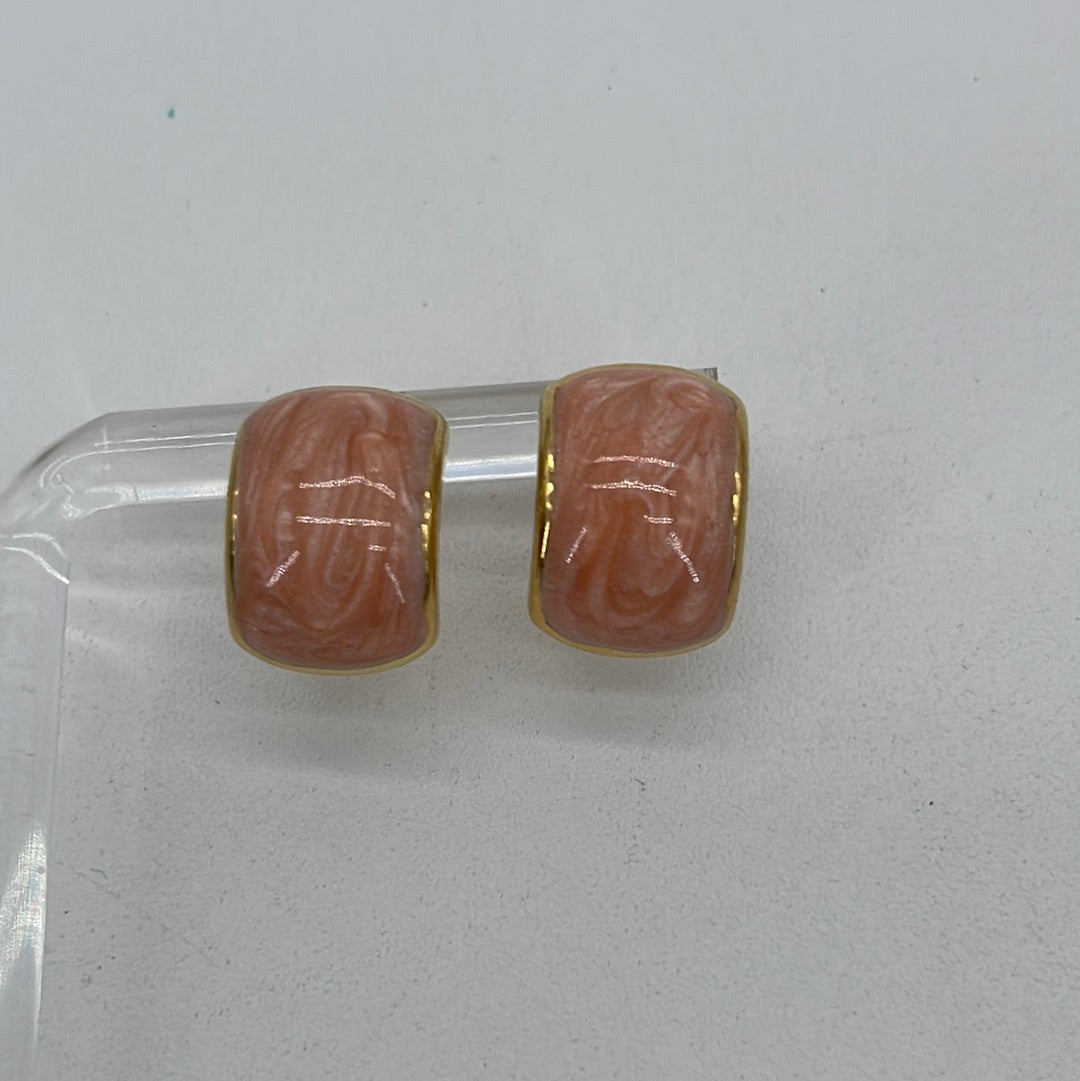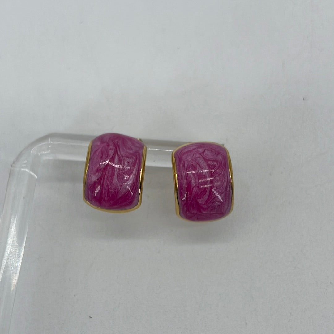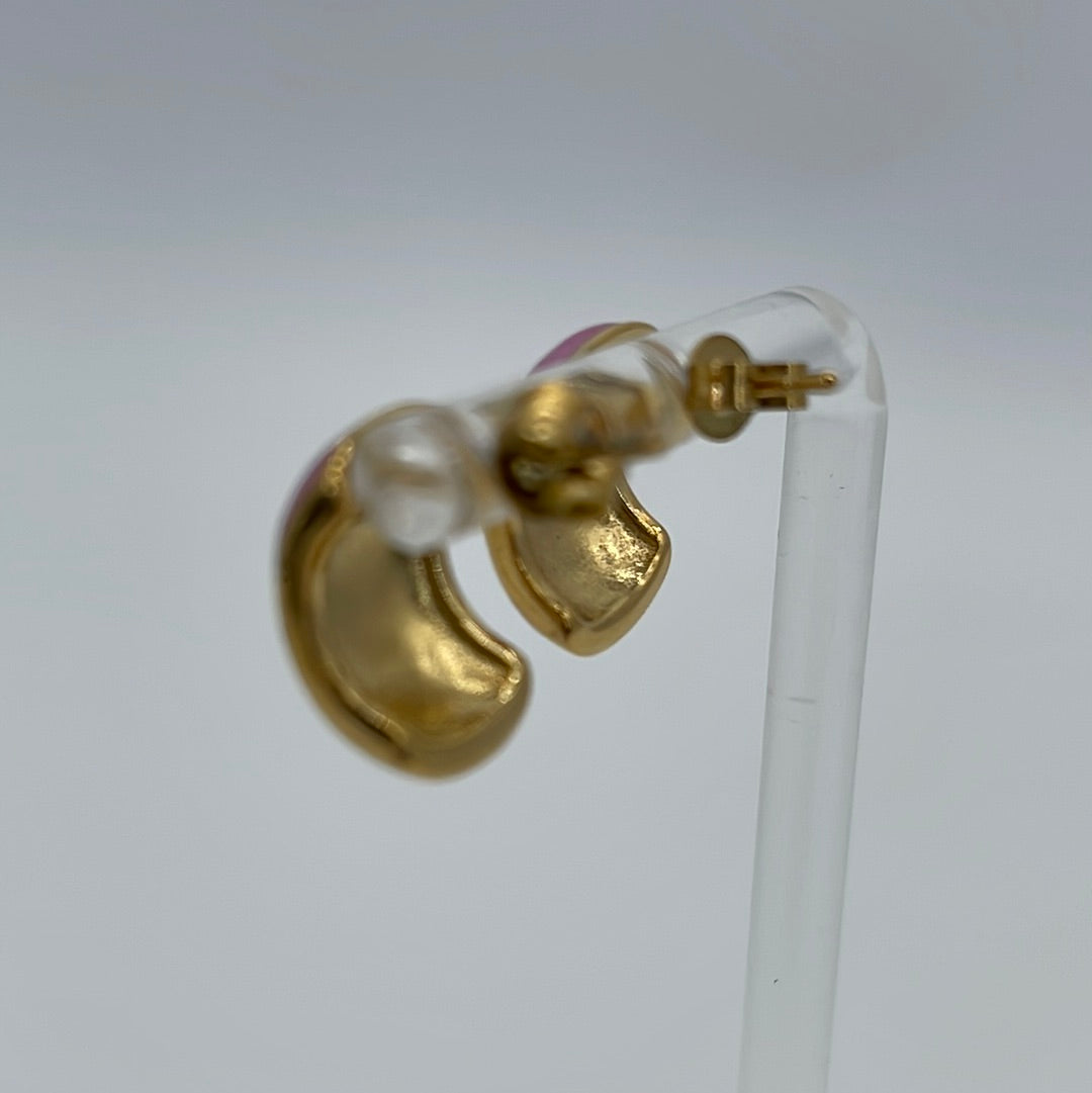 NEW Stainless Steel 18K Gold Plated and Gold Curve Earrings, We have them in Pink, Peach and Blue. Pick your color.