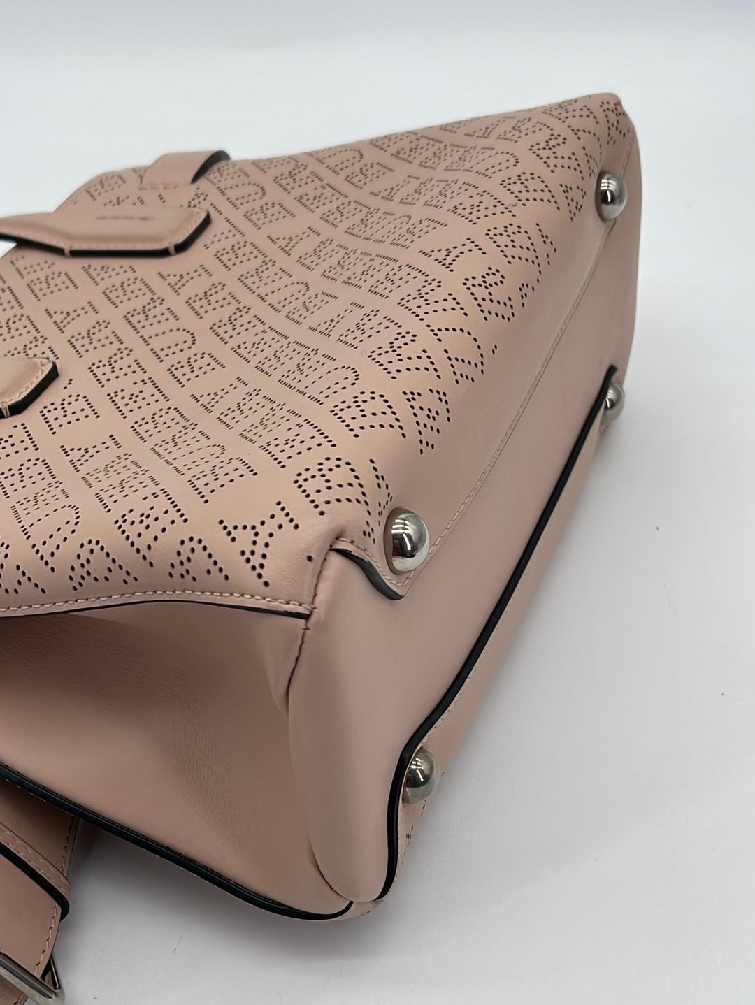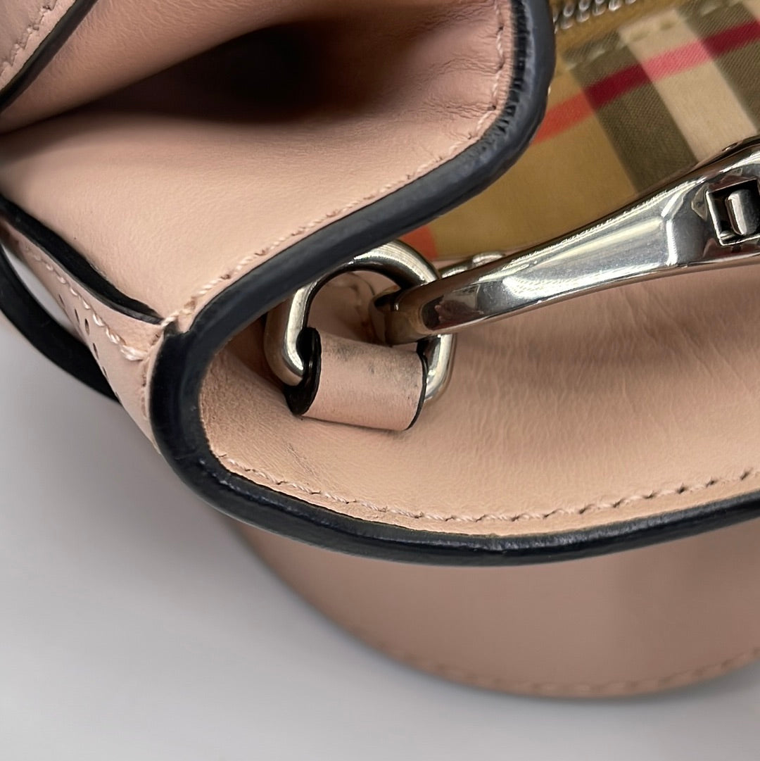 Preloved Burberry Peach Perforated Leather Small Banner Tote