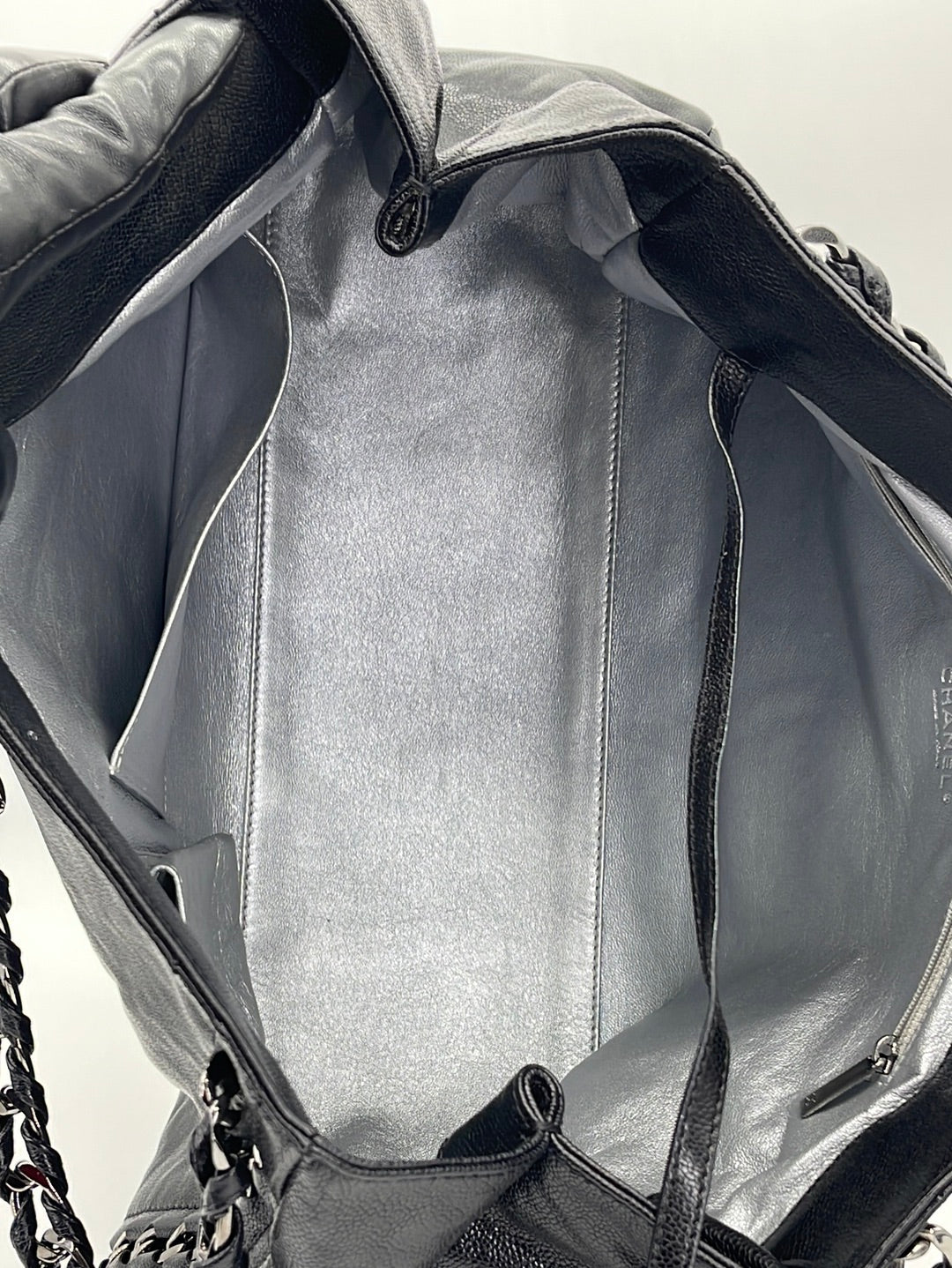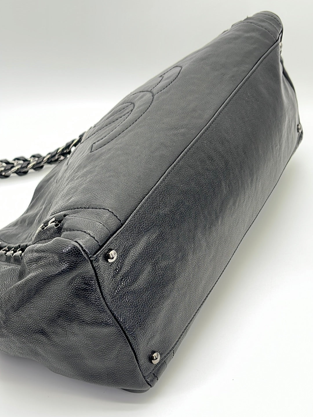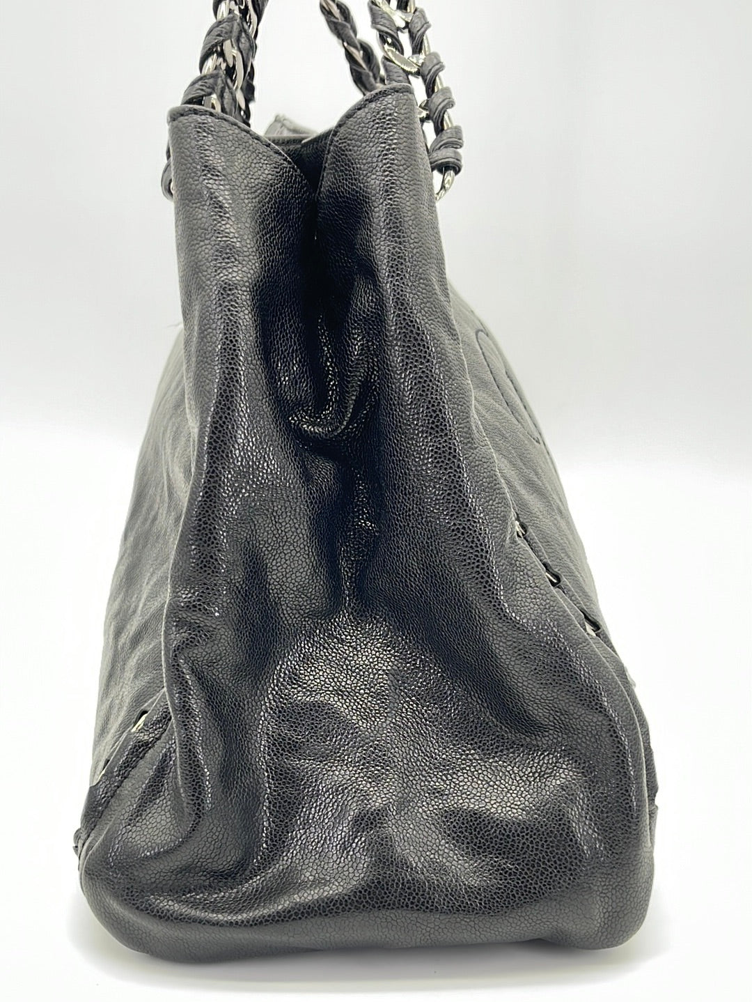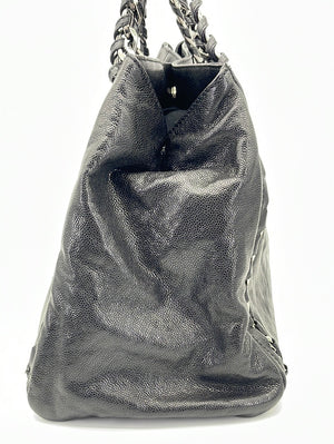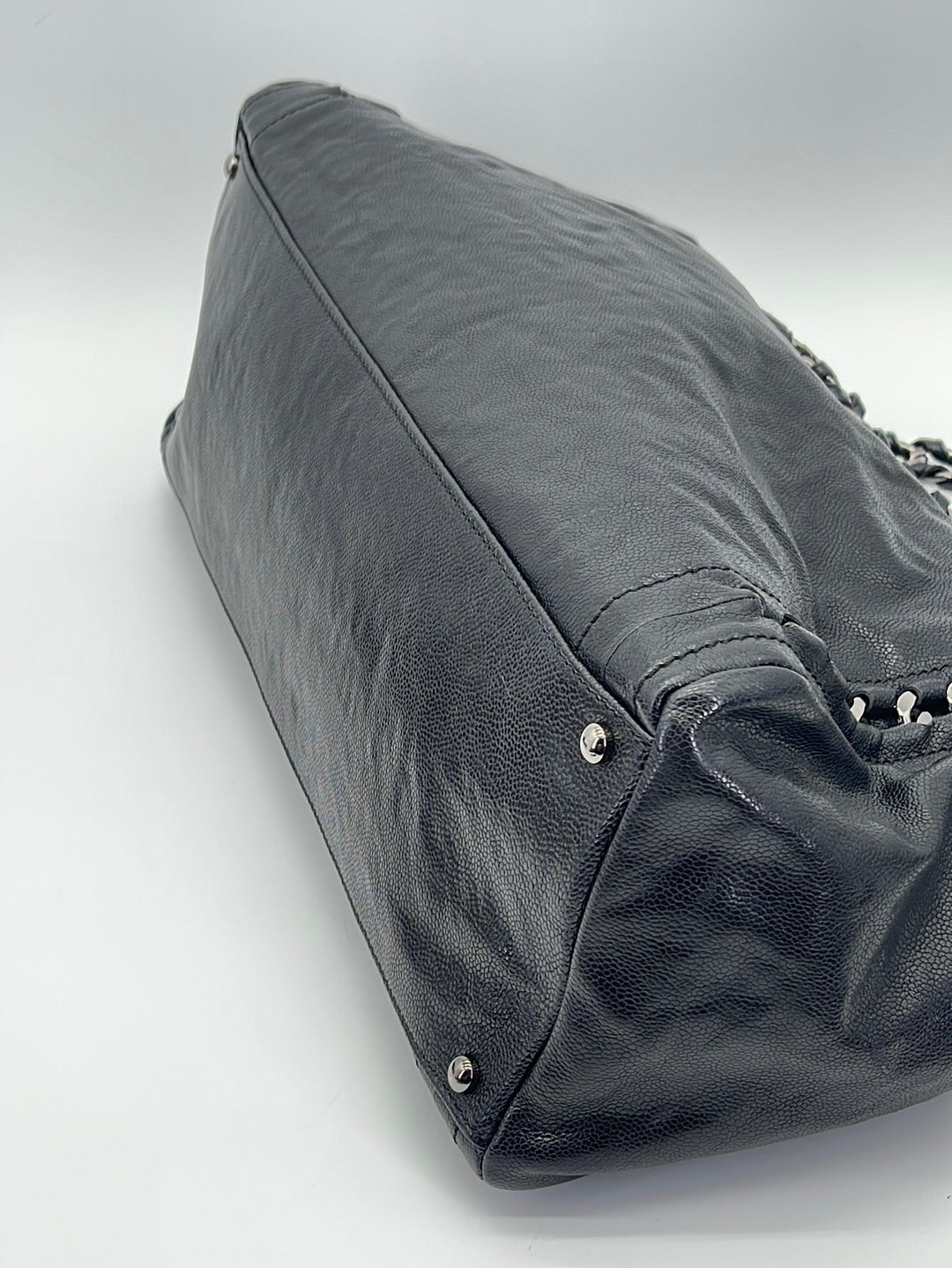 Preloved Chanel Black Glazed Caviar Modern East West Chain Tote