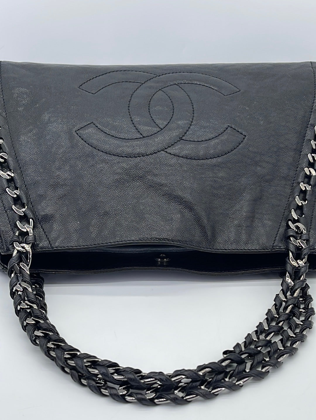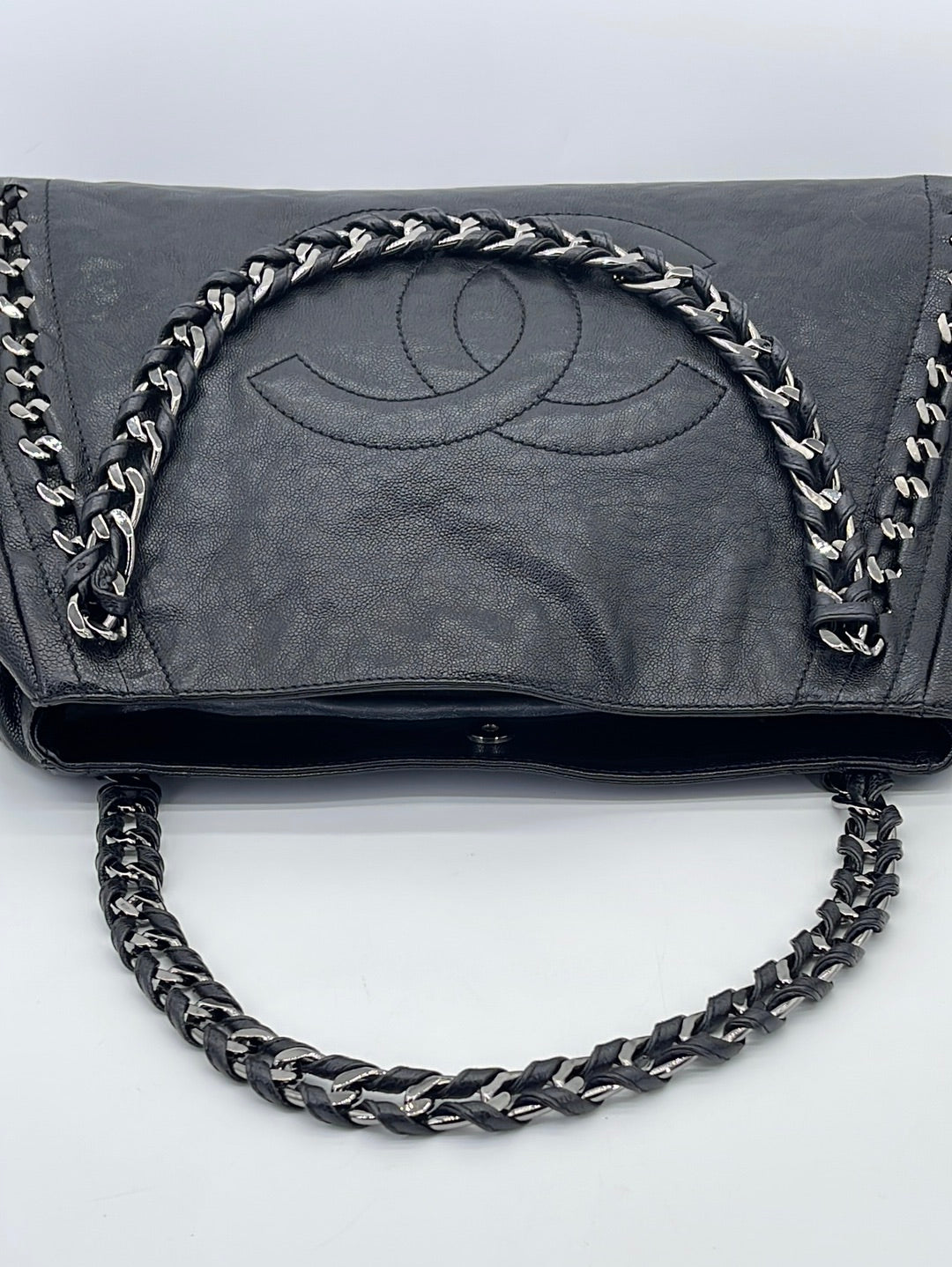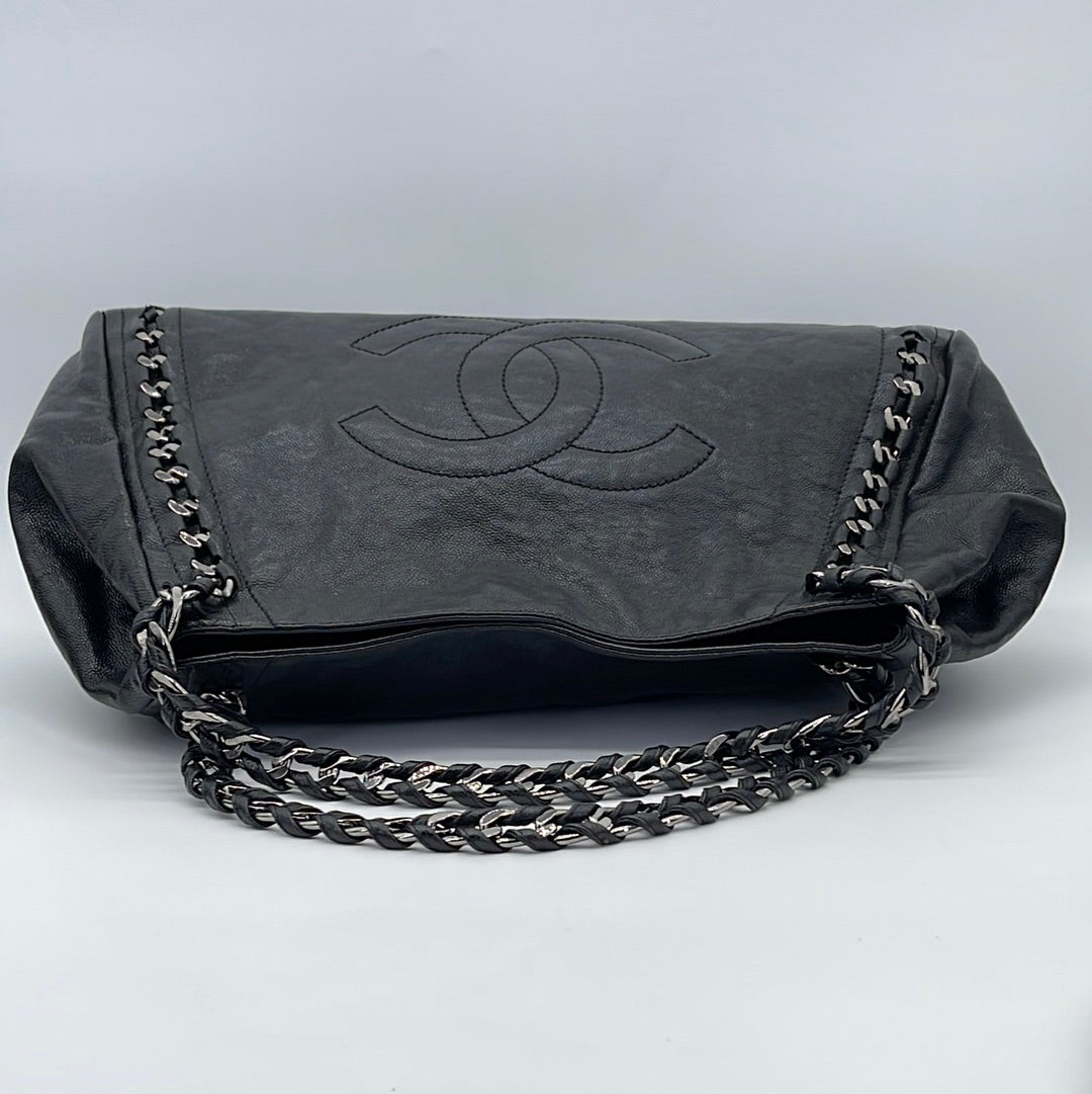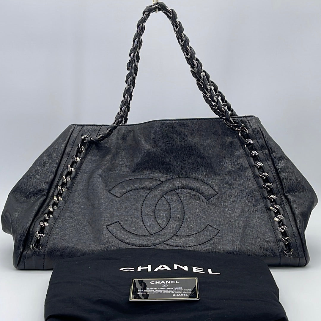Preloved Chanel Black Glazed Caviar Modern East West Chain Tote