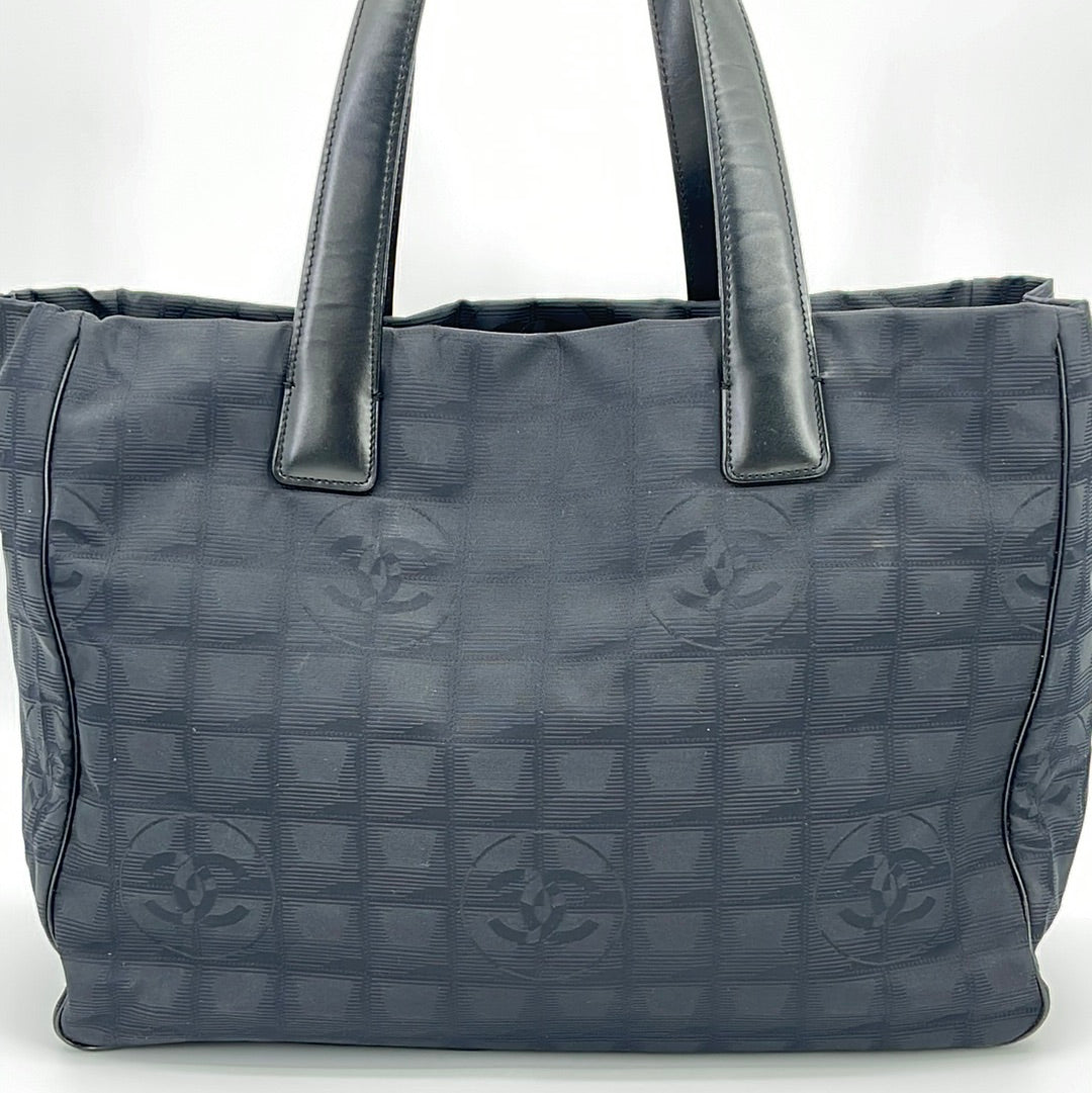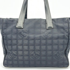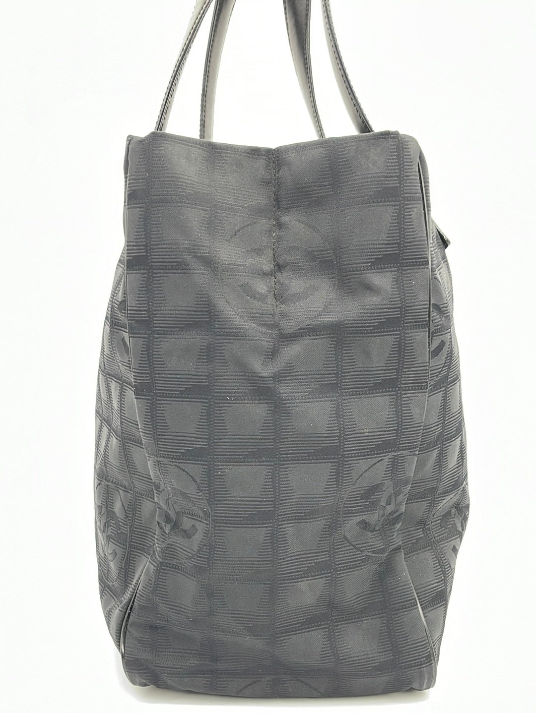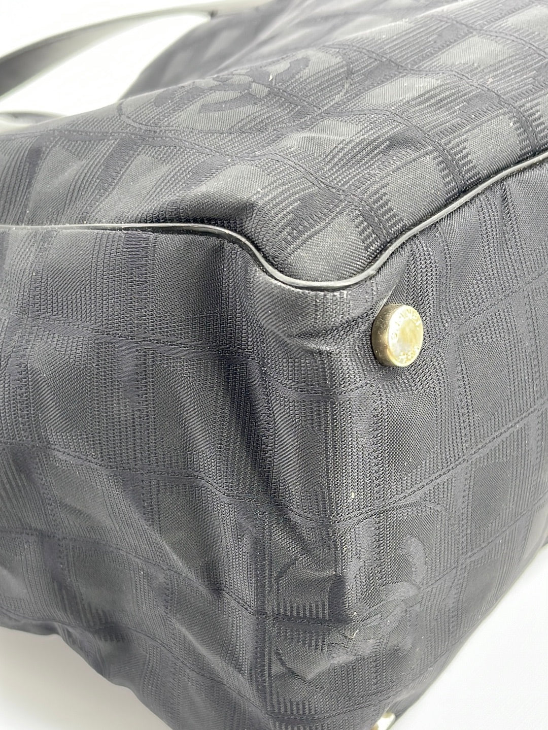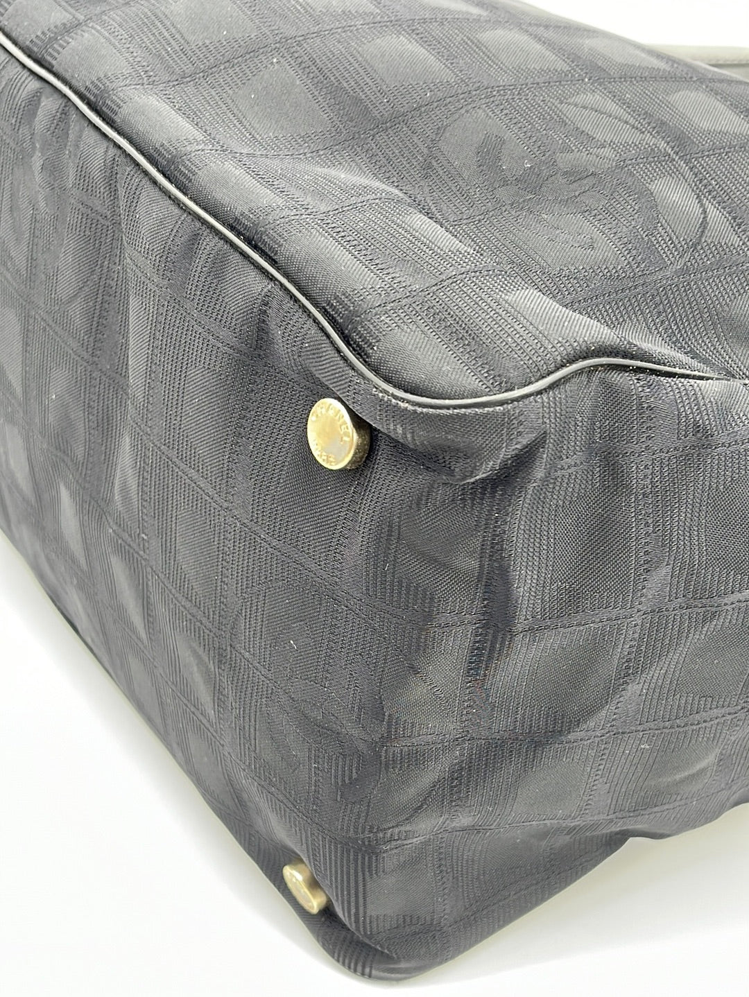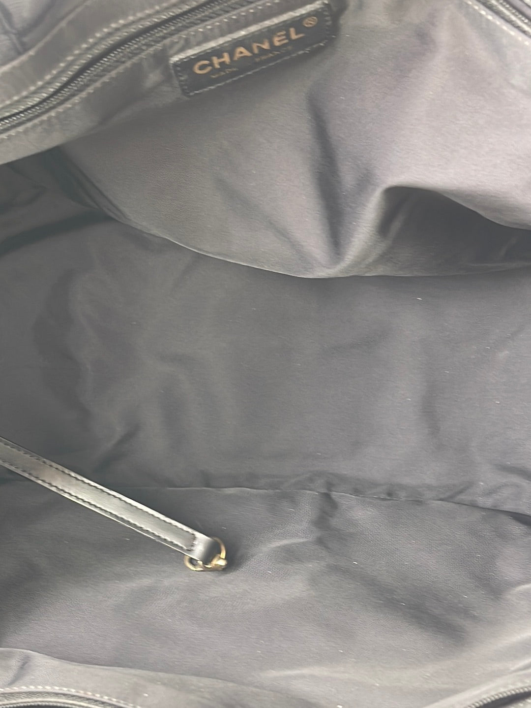 Preloved Chanel Black Canvas and Black Leather Travel Line Tote