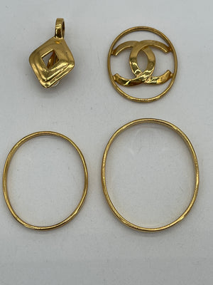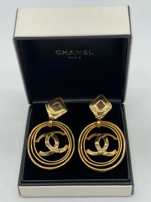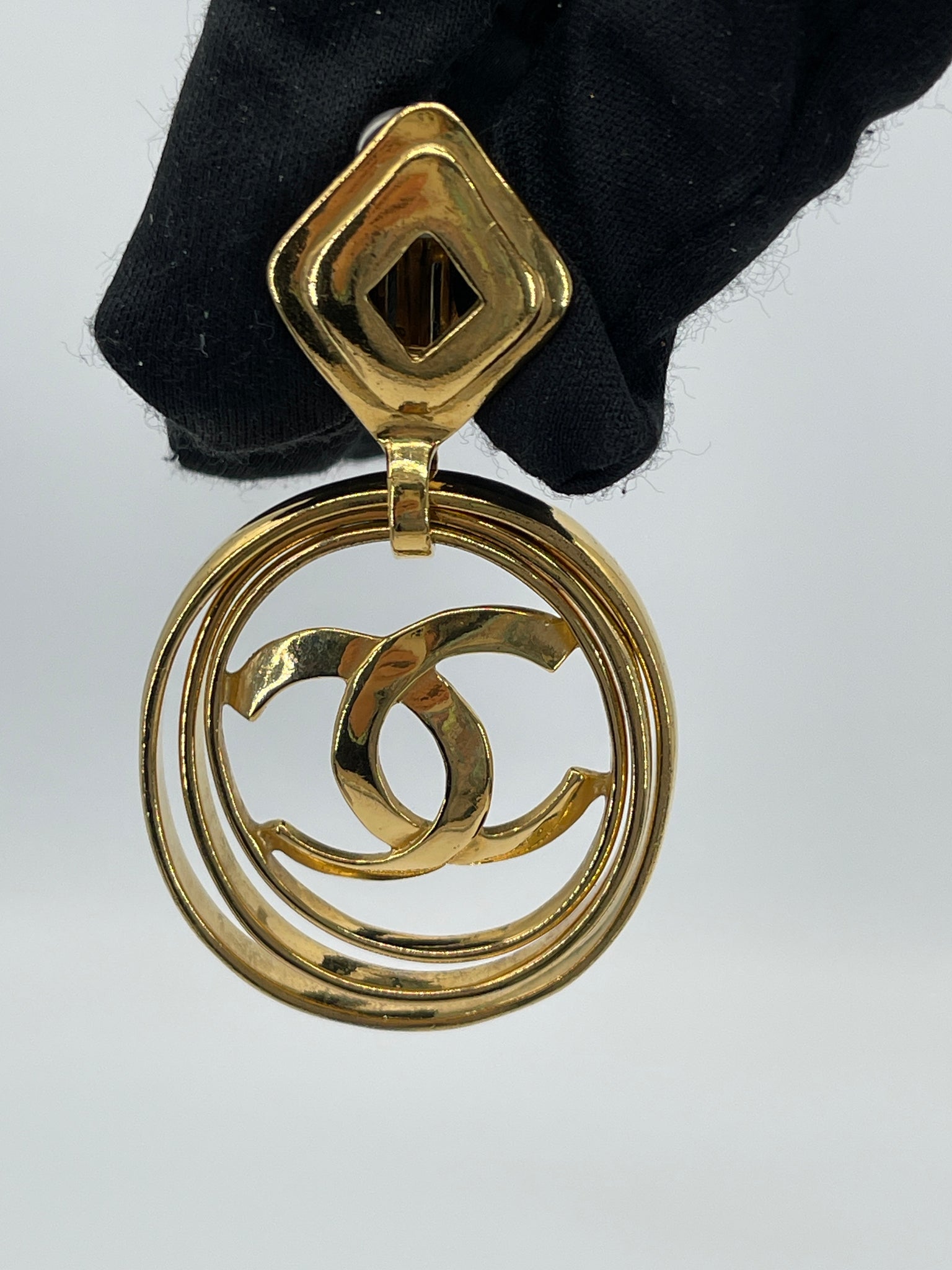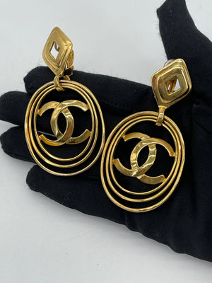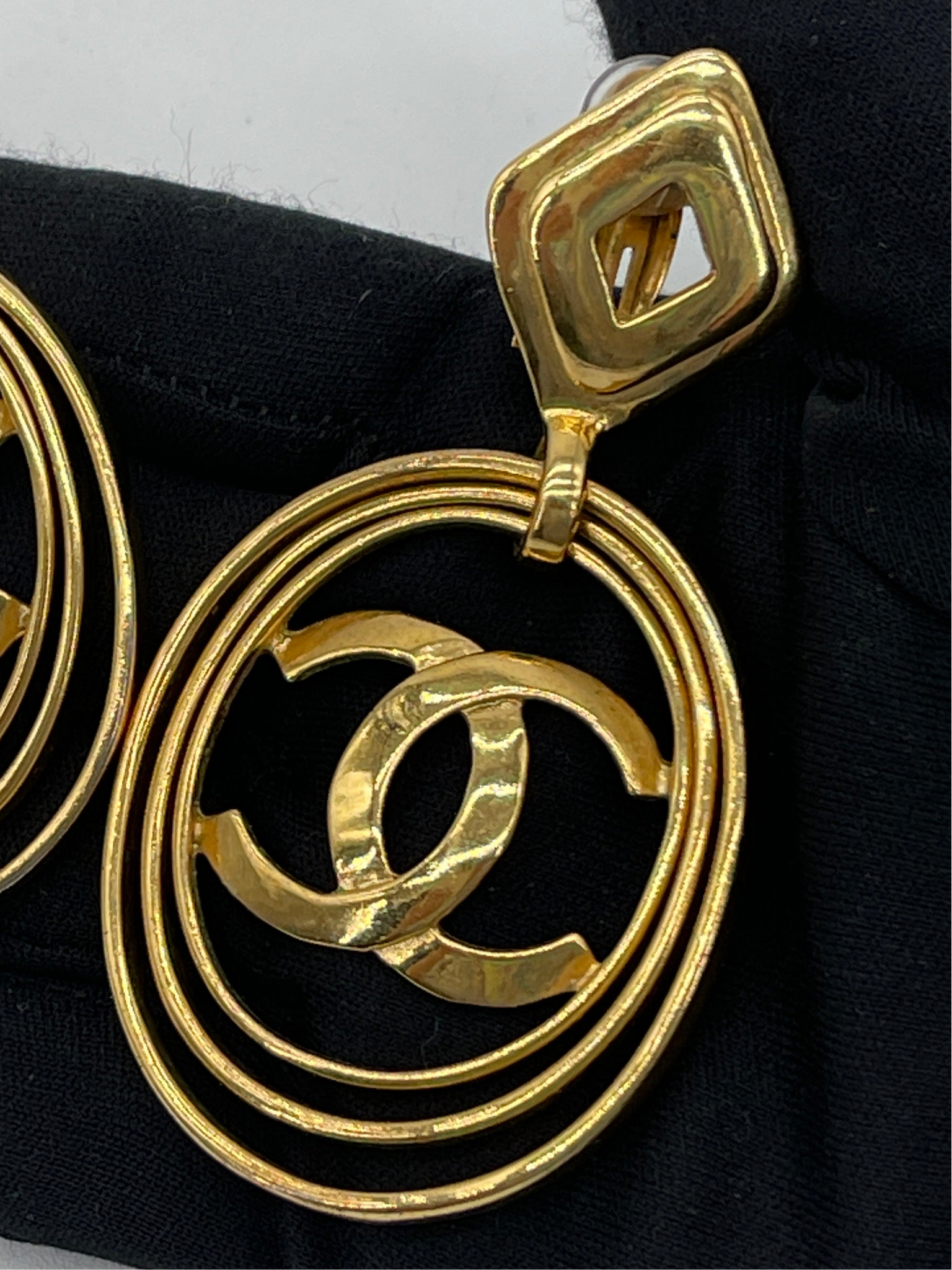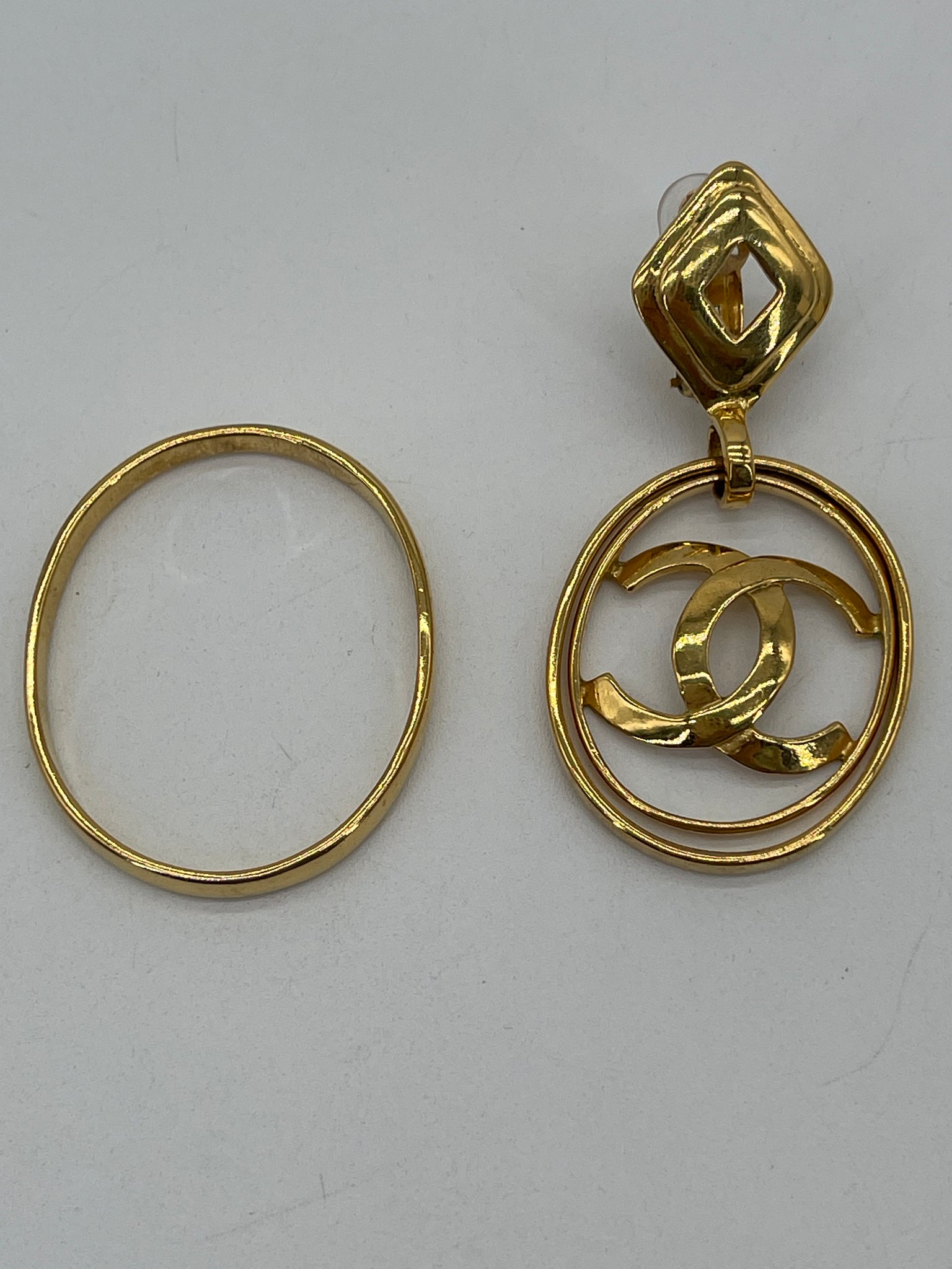 Preloved Chanel Gold Metal Large Clip On Oval Hoop 3 Way Earrings.