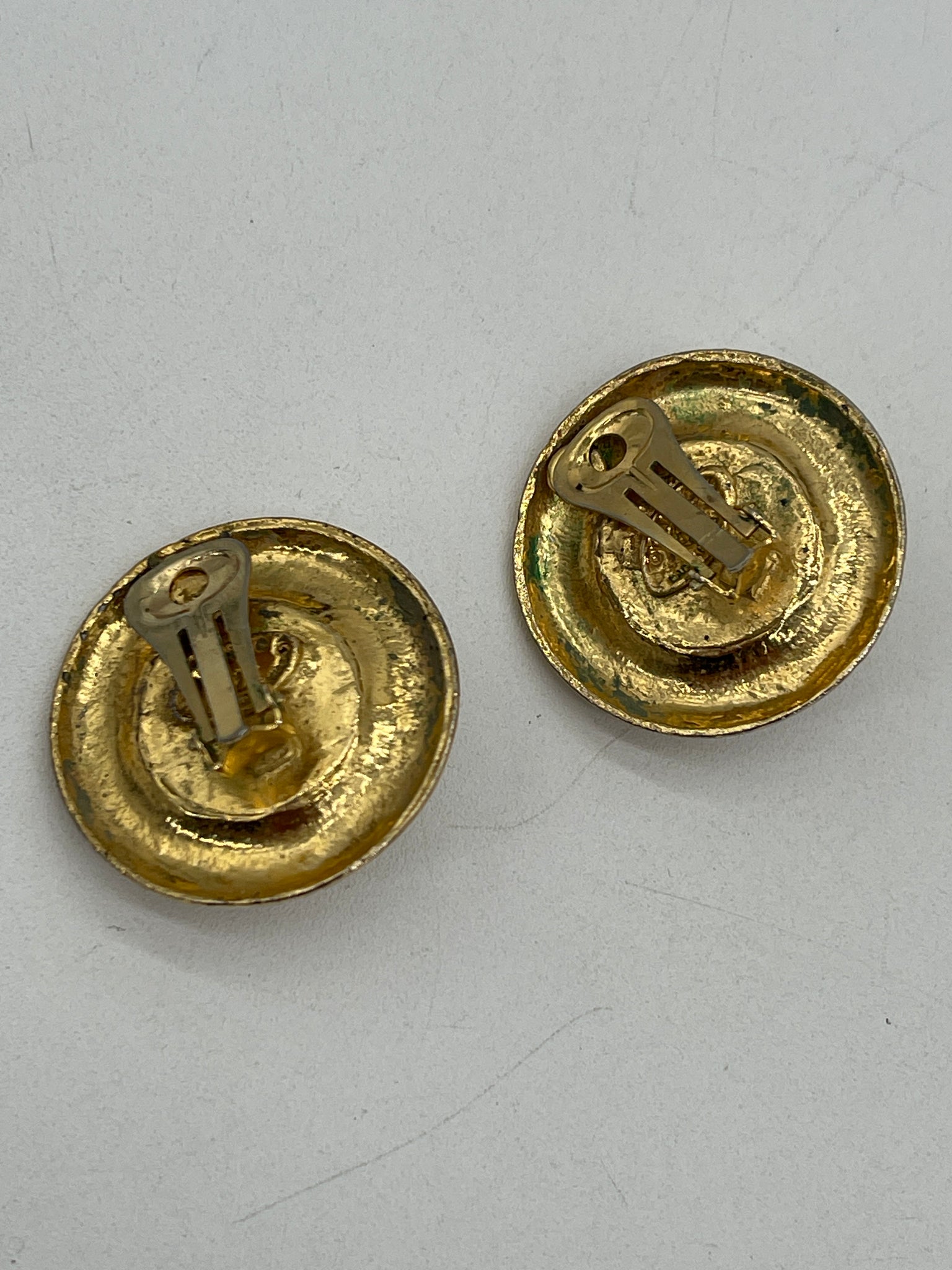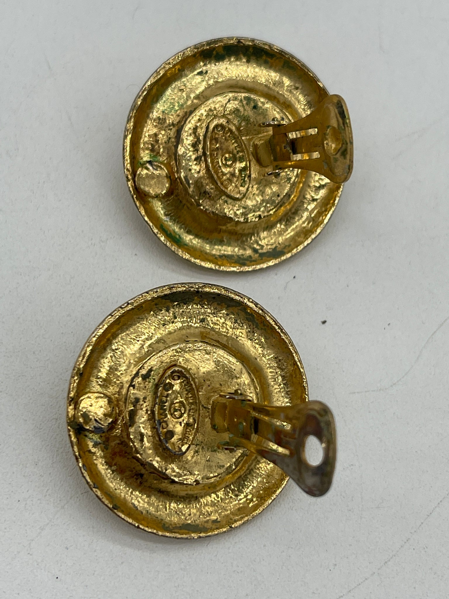 Rare vintage Chanel earrings. Clip-on earrings with imitation pearls set in gold tone. Vintage costume jewelry.