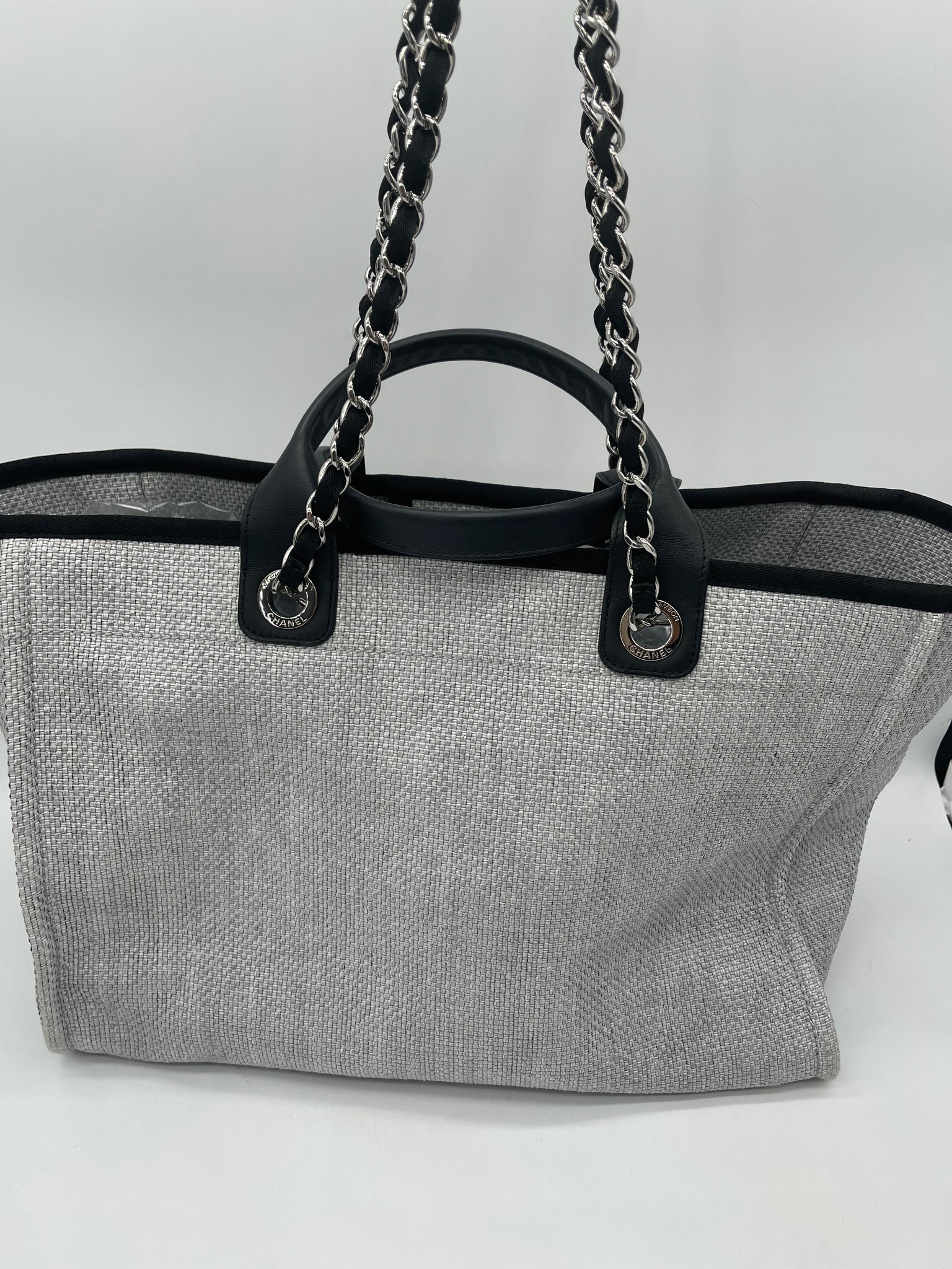 Preloved Chanel Gray Raffia Leather Deauville L Tote (Large)
