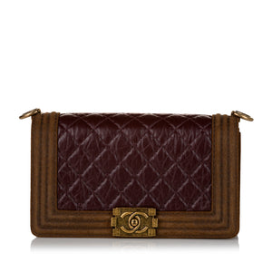 Karl Lagerfeld designed the Boy Collection. Karl was stated as saying that the very spirit of Chanel was inspired by Boy Capel, which is why this collection is called the "Boy Chanel." A slight change of pace from the usual Chanel designs, this bag is made of beautiful quilted leather. This particular bag is the original medium size of the collection and features a long chain-link strap with a leather pad that can be used as a long strap or looped around as a shoulder bag.