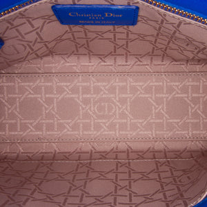 Preloved Dior Blue Lambskin Cannage ABC Dior Lady Dior Small Shoulder Bag. The Lady Dior My ABCDior bag epitomizes Dior's vision of elegance and beauty. Sleek and refined, the timeless style is crafted in Blue lambskin with Cannage stitching, creating the unmistakable quilted texture. Pale gold-finish metal D.I.O.R. charms lend elegant appeal. Featuring a strap that can be personalized with symbolic badges, the small, unique design may be carried by hand or worn as shoulder bag.