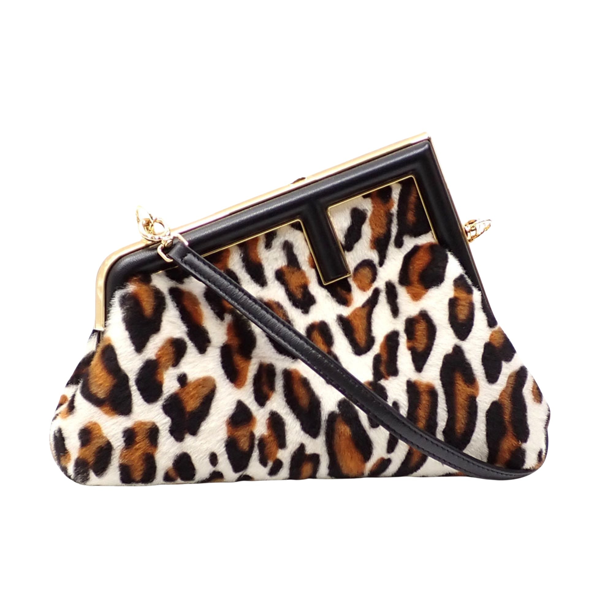 Preloved Fendi First Leopard Print Sheepskin Fur Crossbody Purse