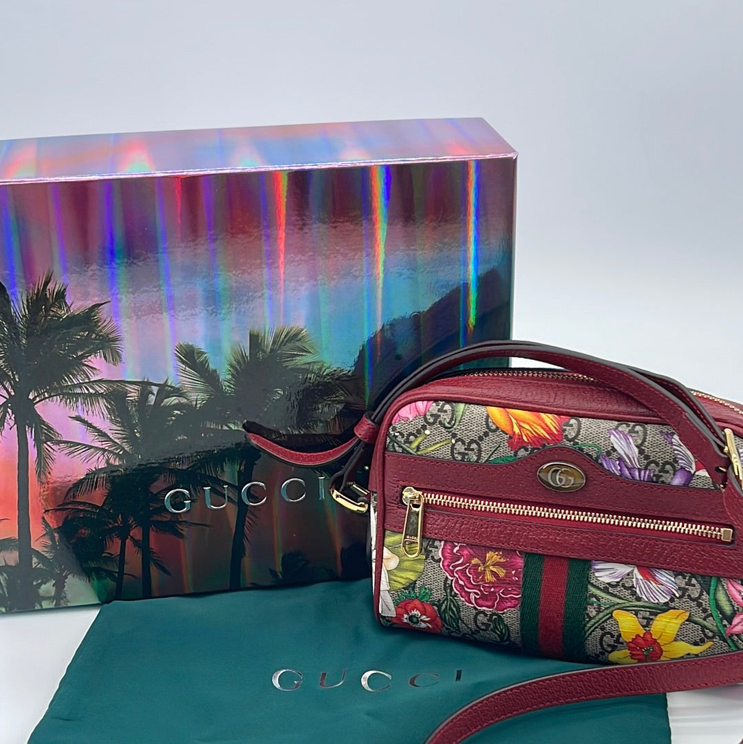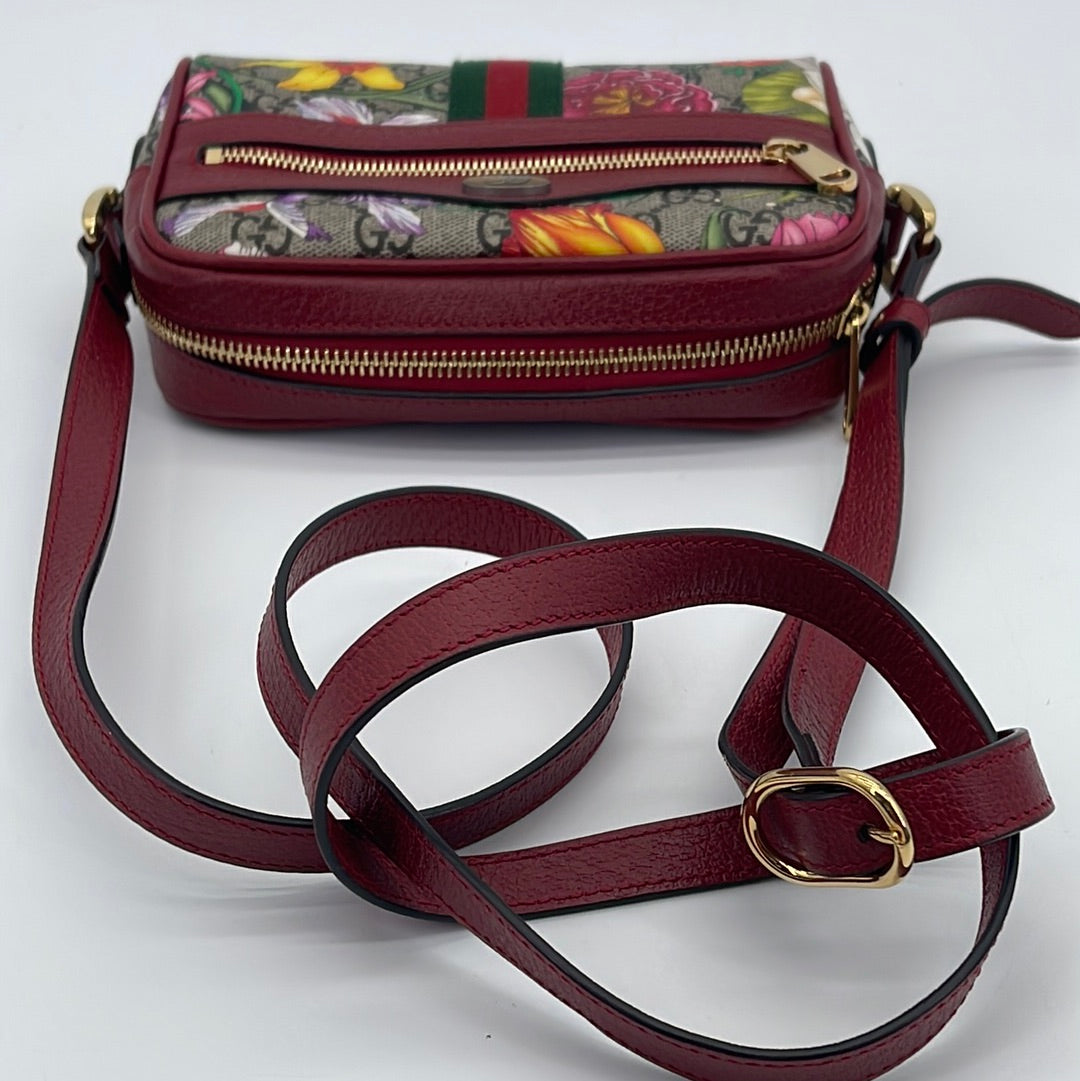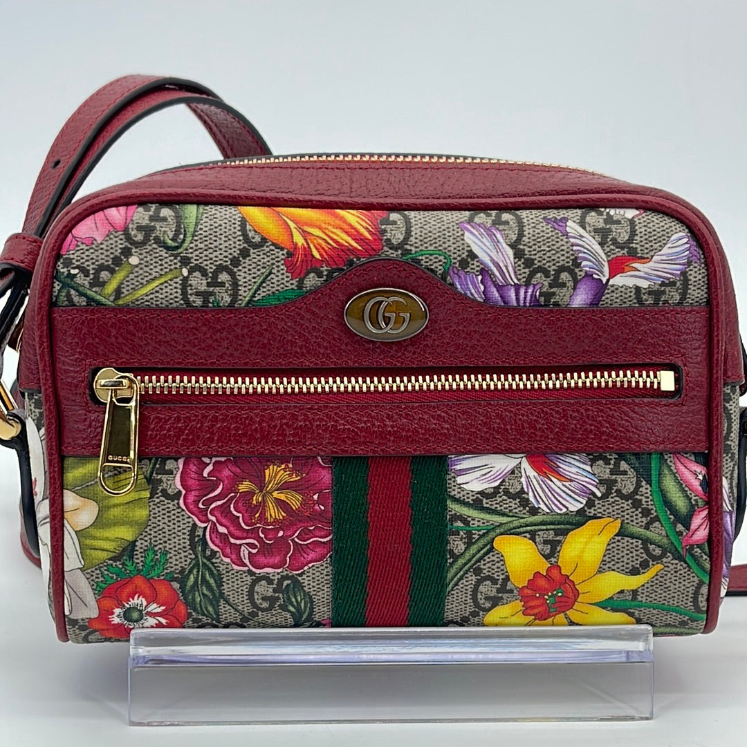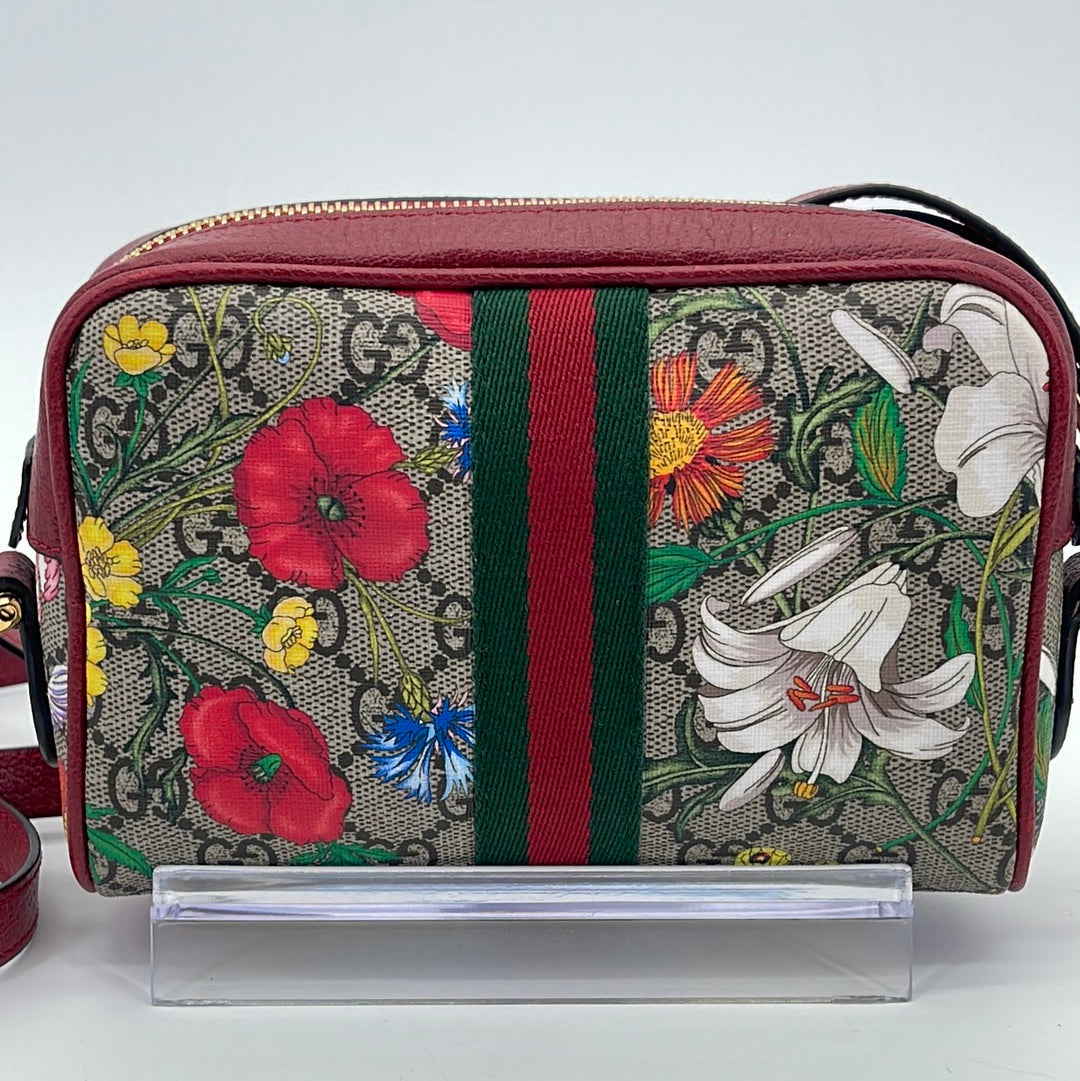 Preloved GG Supreme Red Floral Ophidia Crossbody Bag