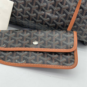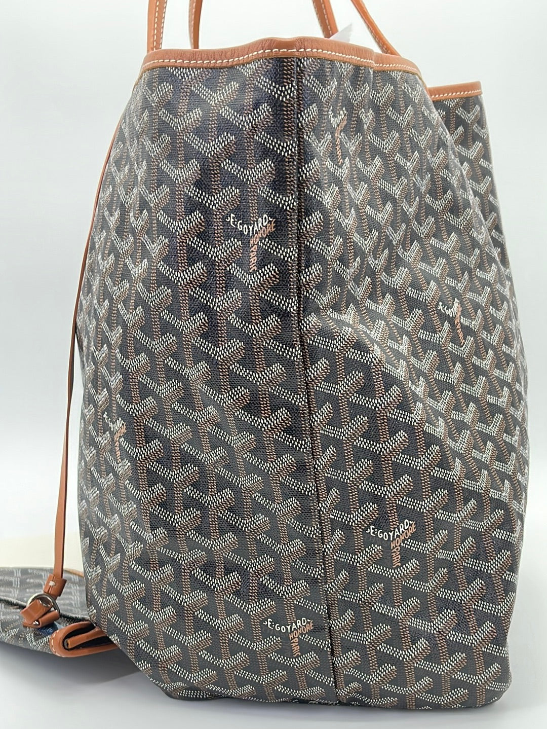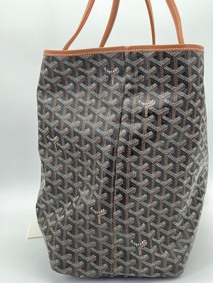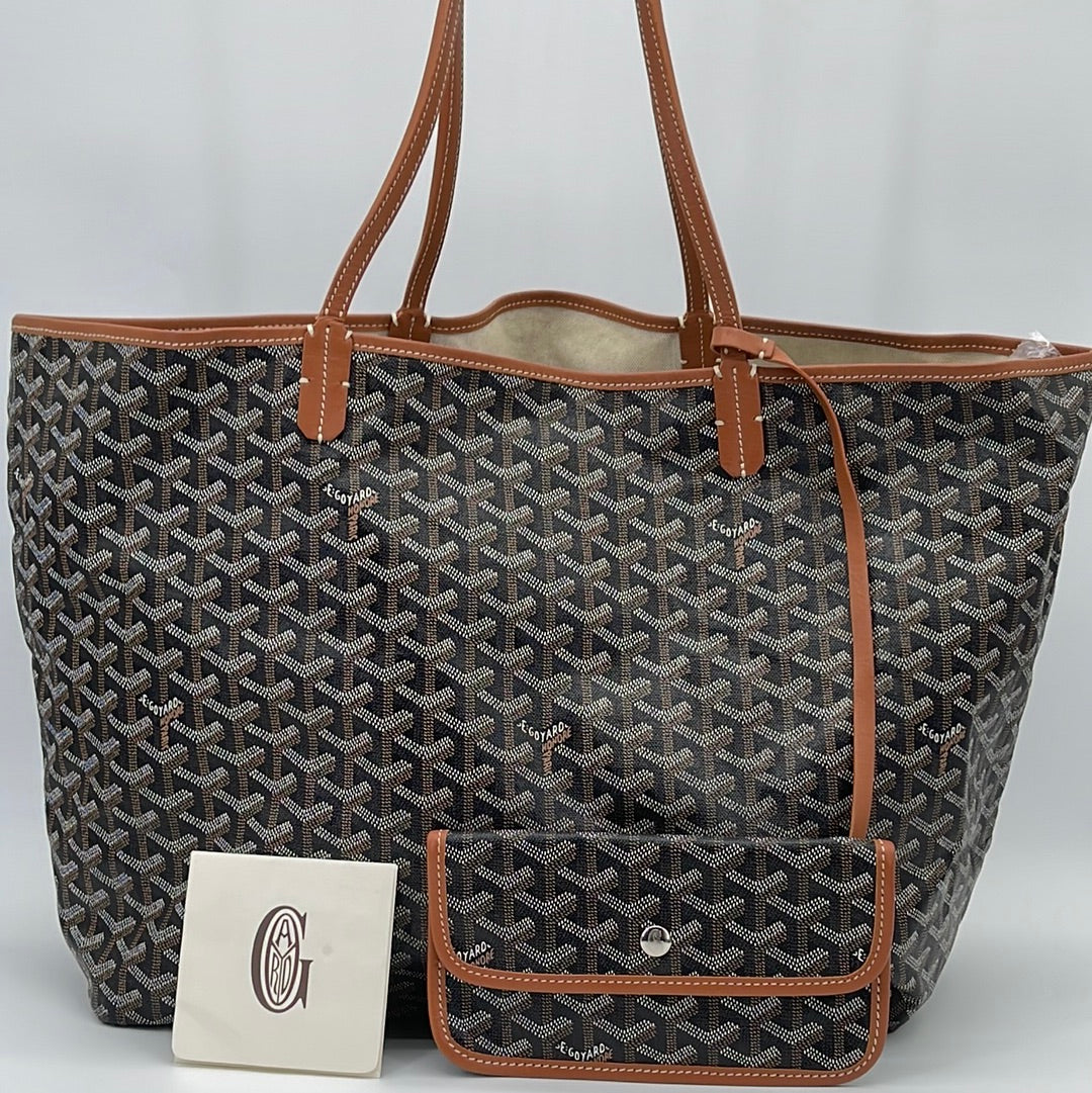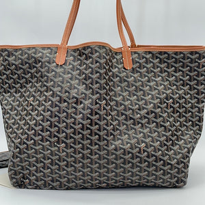 Preloved Goyard Goyardine Black and Tan Saint Louis Tote GM with pouch