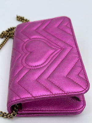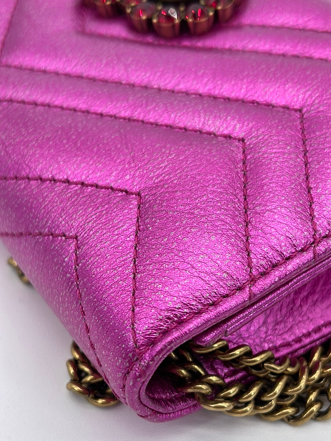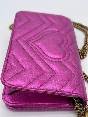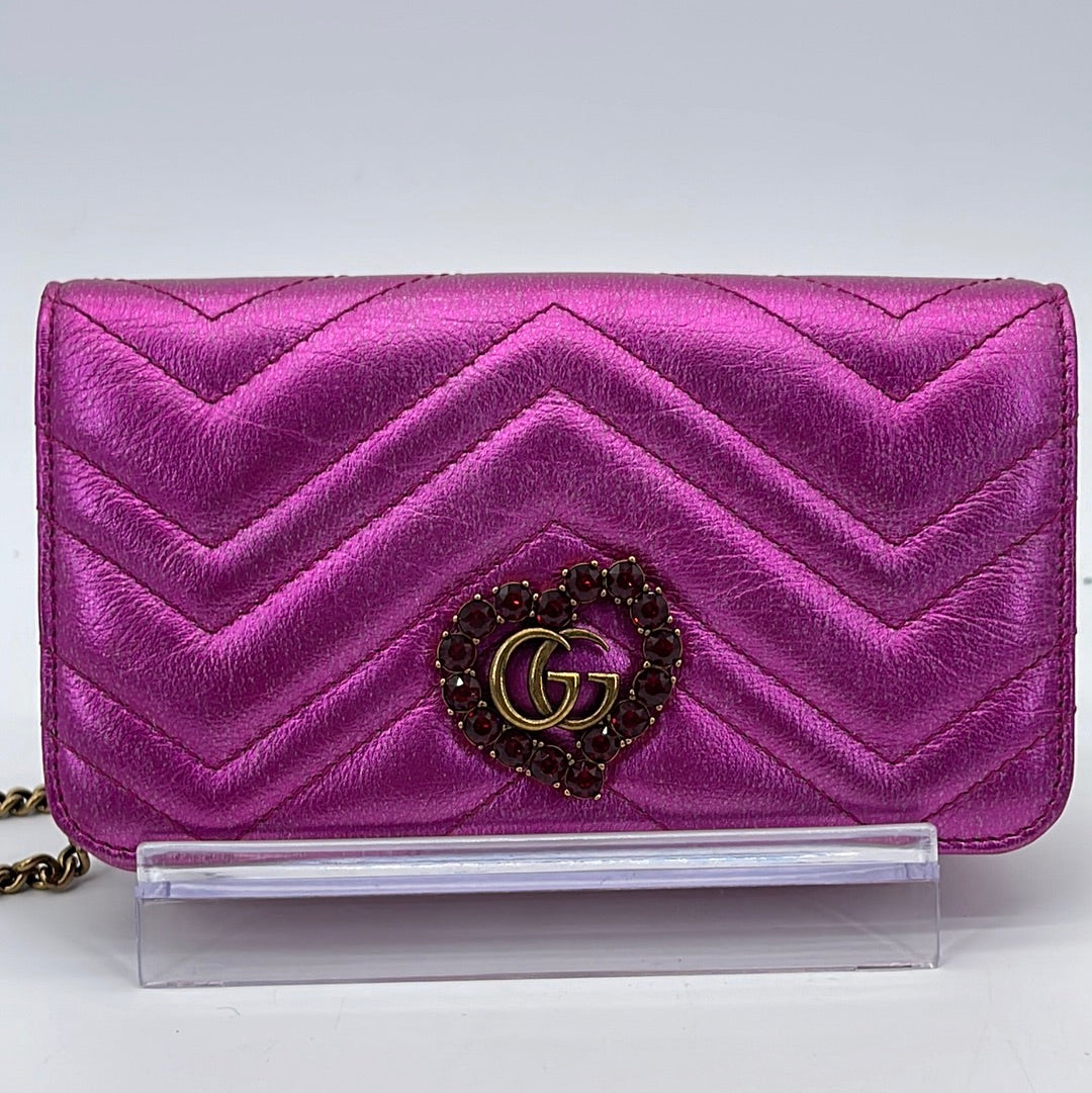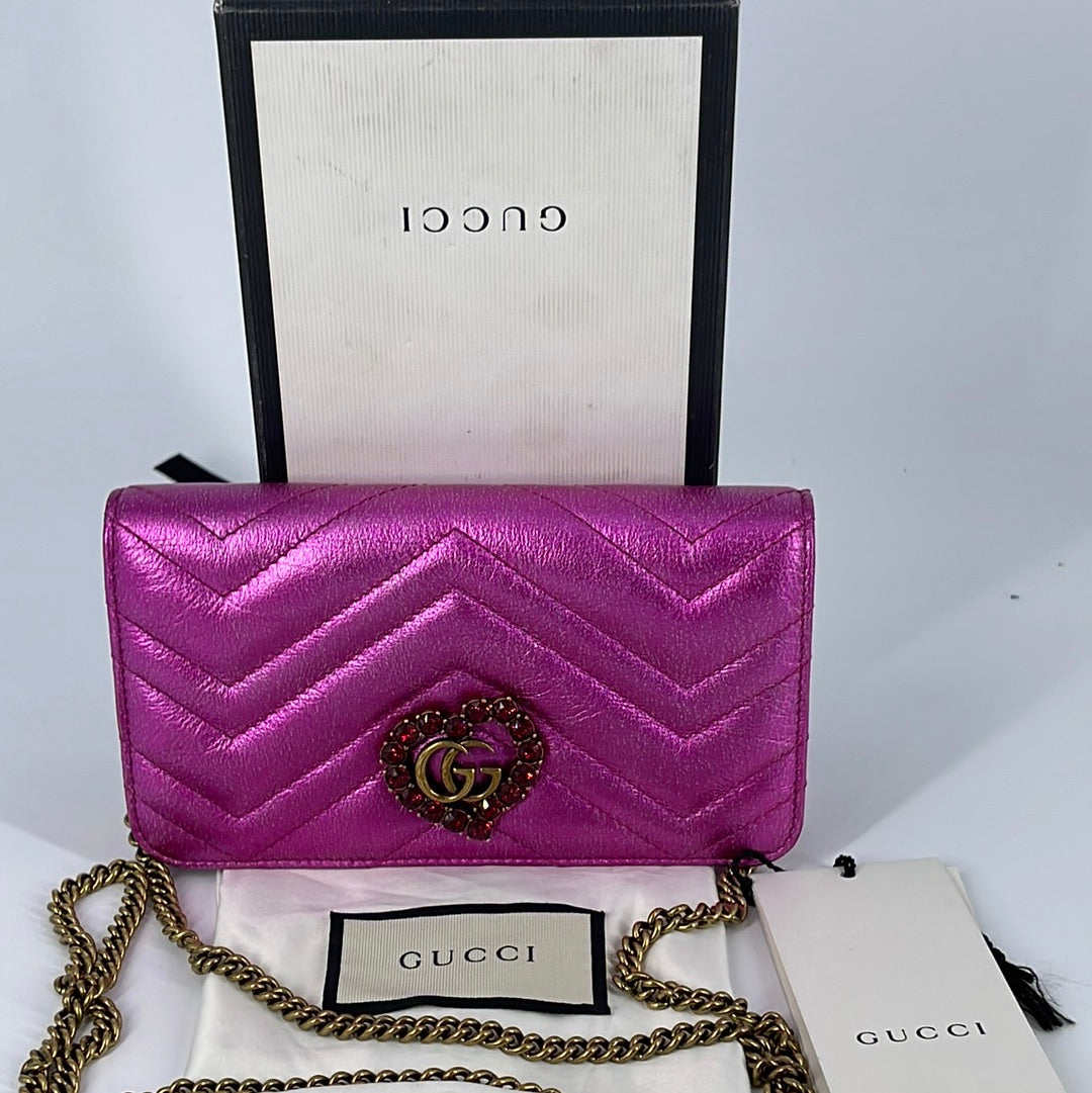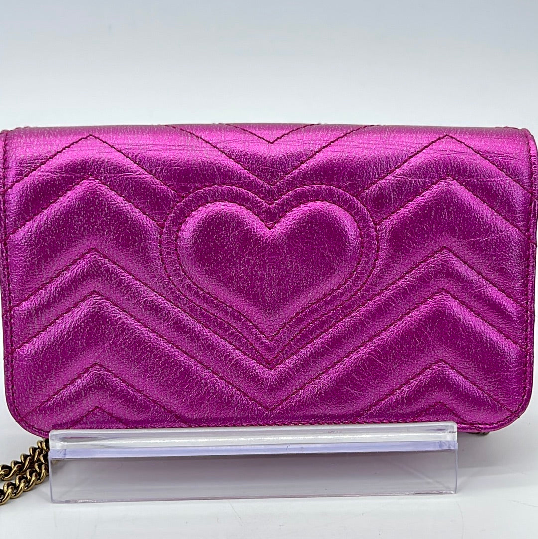 GIFTABLE Preloved Gucci Crystal Heart Fuchsia Leather Small Crossbody Bag 5498802067 061923 $200 OFF