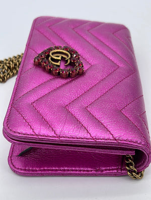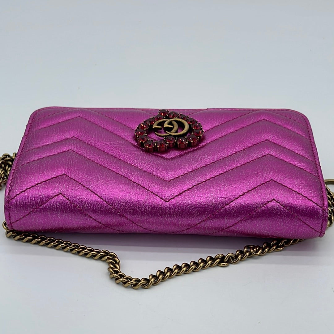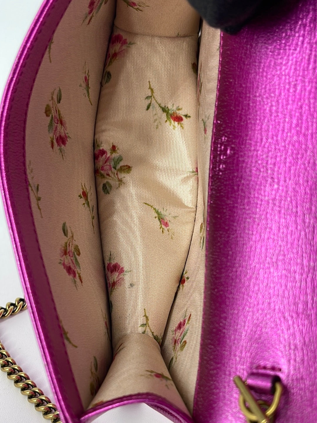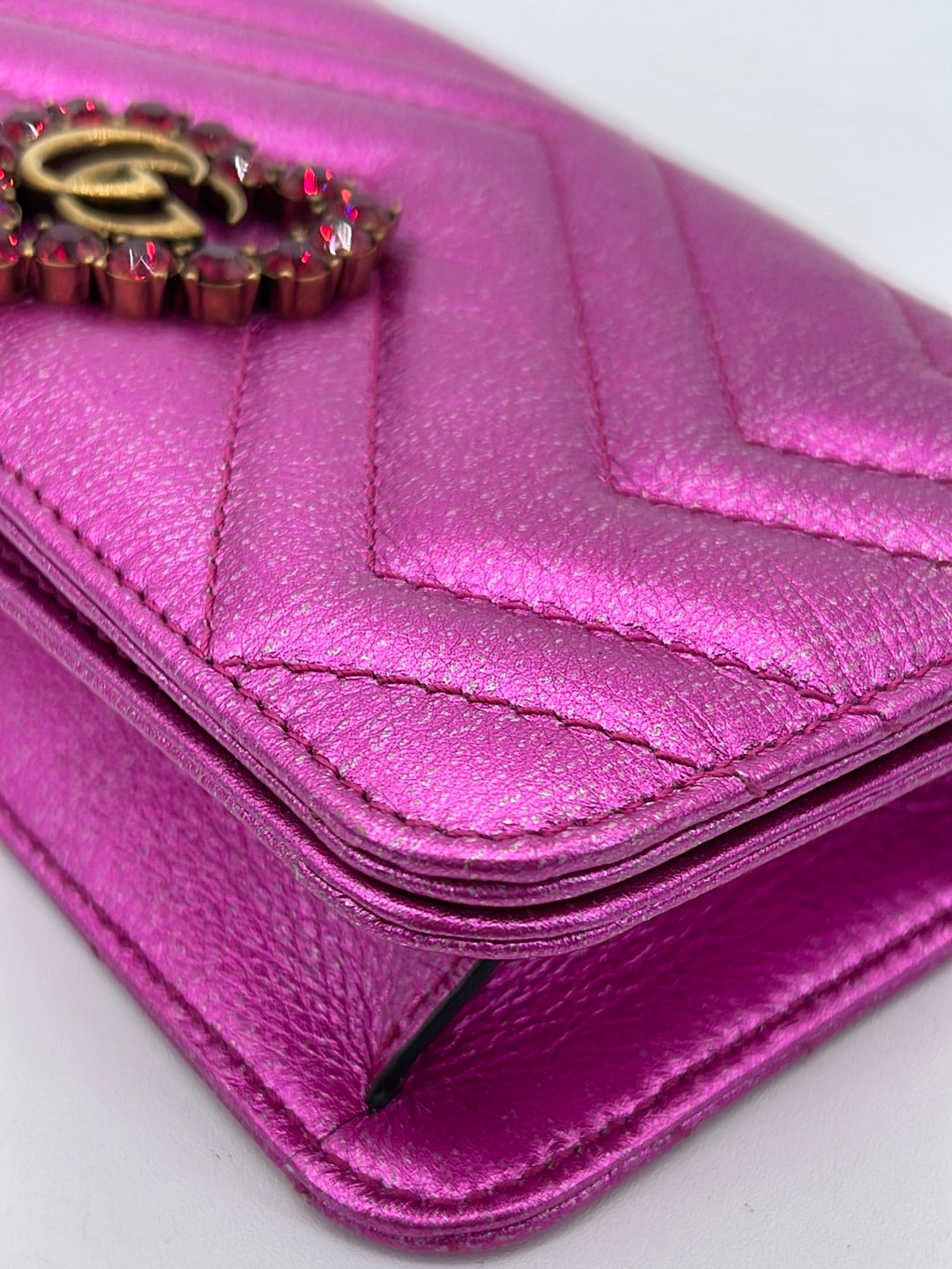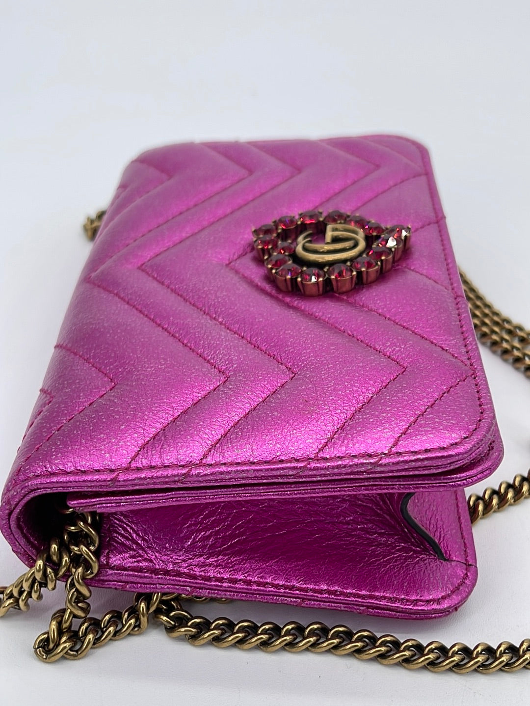 GIFTABLE Preloved Gucci Crystal Heart Fuchsia Leather Small Crossbody Bag 5498802067 061923 $200 OFF