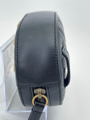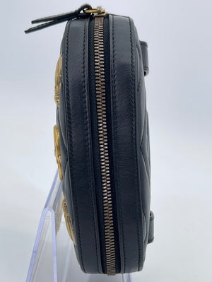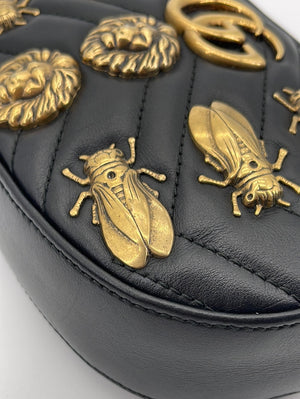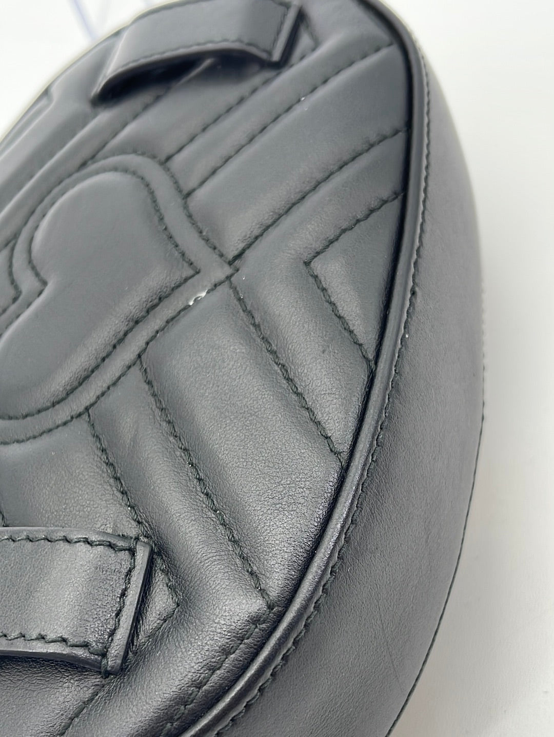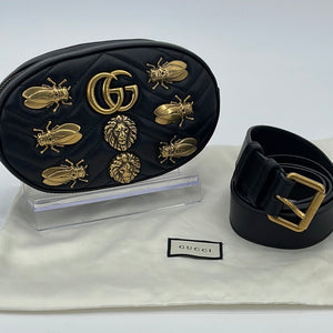 Preloved Gucci GG Marmont Matelasse Black Leather Insect Belt Bag 476434585795 060923 $500 OFF