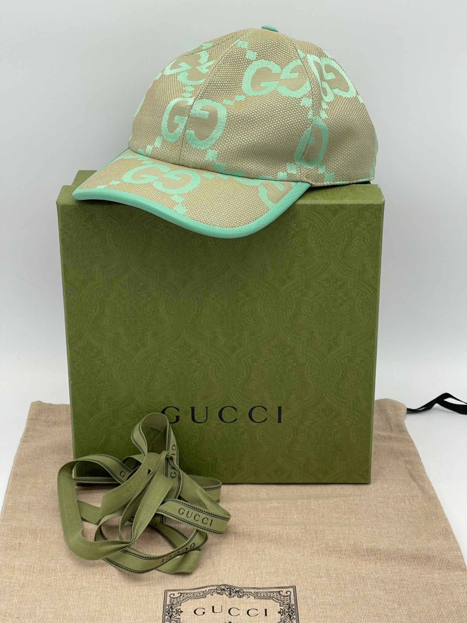 Preloved Gucci Jumbo GG baseball Hat in Beige/ Mint Green Canvas. Size Large, 58Cm