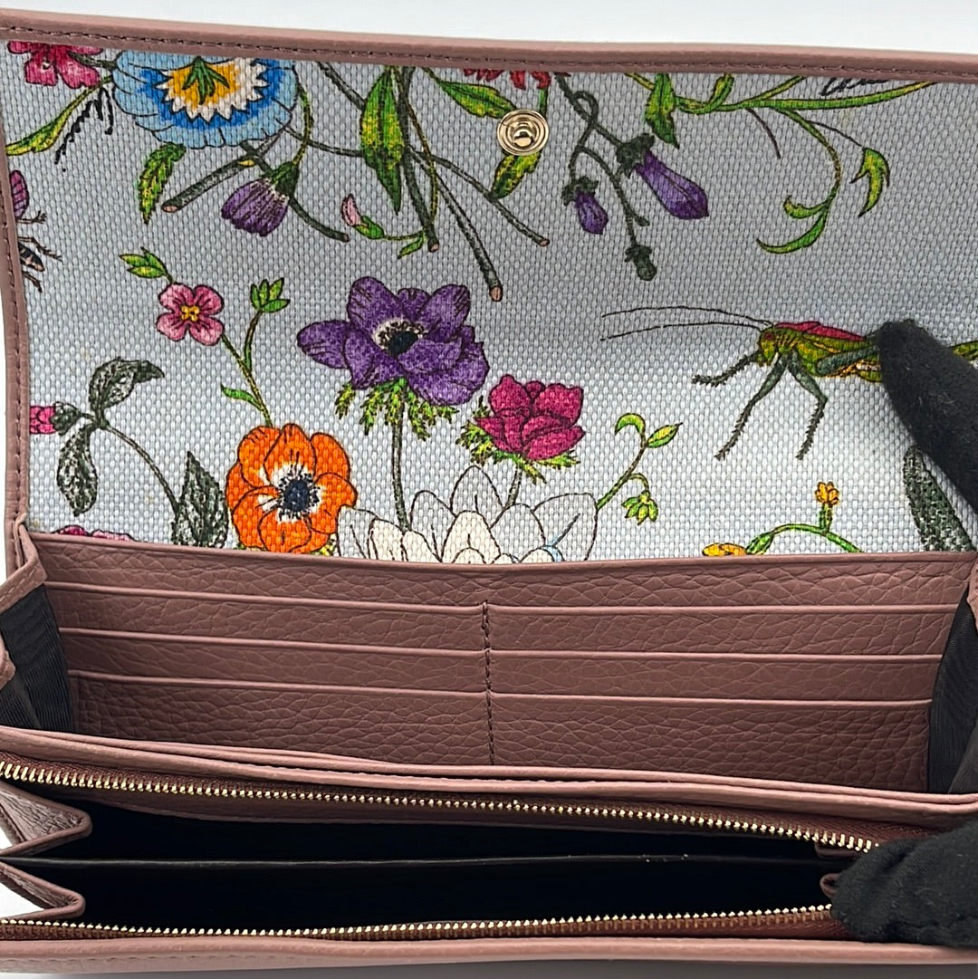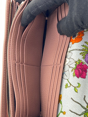 PRELOVED GUCCI Pink Leather Long Continental Wallet with Floral Interior