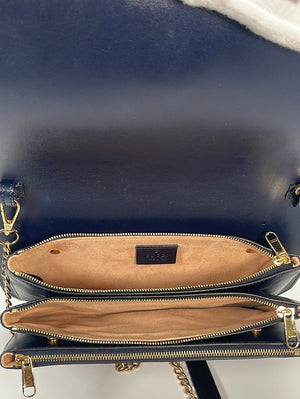 Preloved Gucci Yellow and Navy Ophidia Compartment GG Imprime Medium Messenger Bag