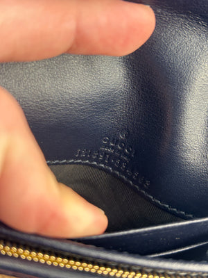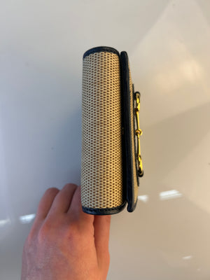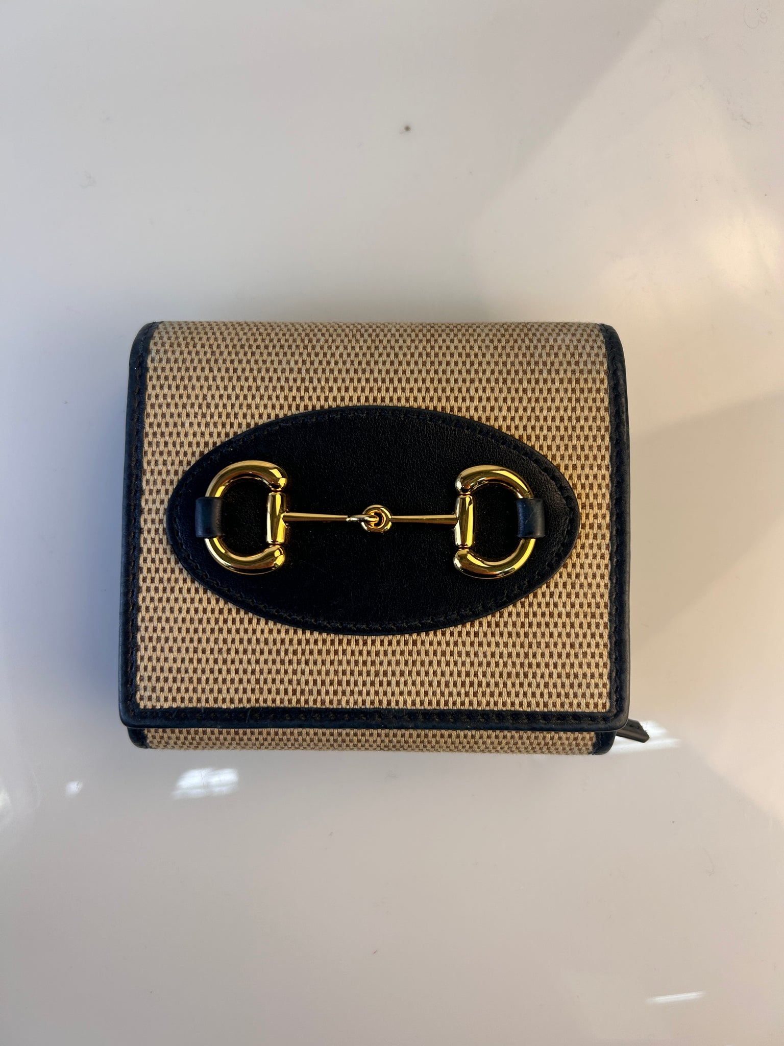PRELOVED Gucci Black Leather and Tan Canvas Horsebit Compact Wallet