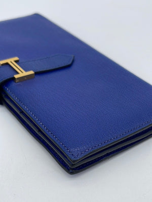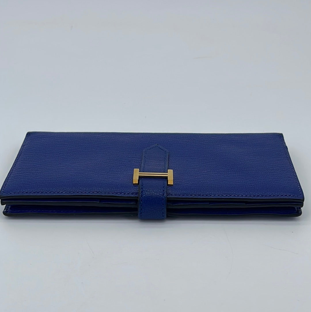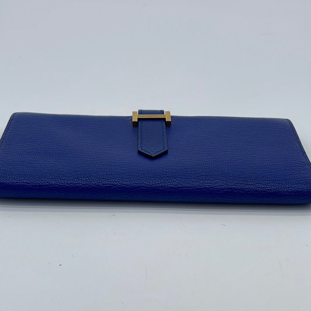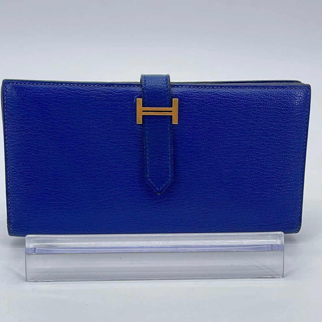 Preloved Hermes Bearn Epsom Blue Leather Long Bifold Wallet