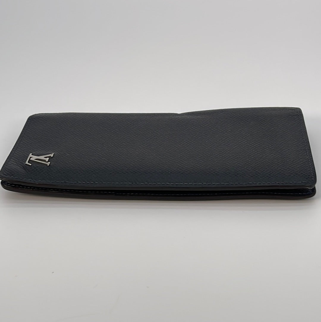 Preloved LOUIS VUITTON Navy Taiga Brazza Bifold Long Wallet (with Coin Compartment)