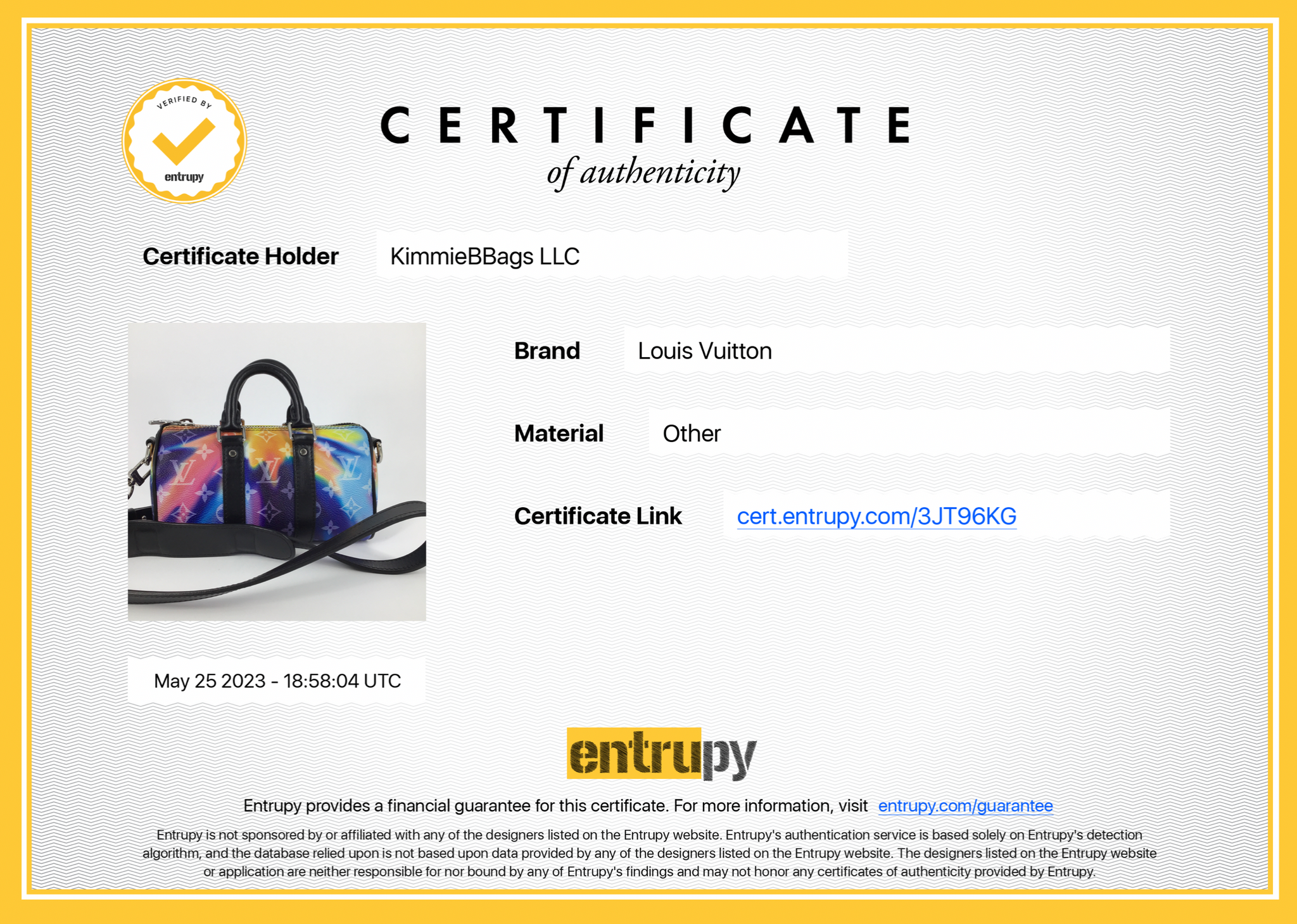 Entrupy letter of Authenticity!
