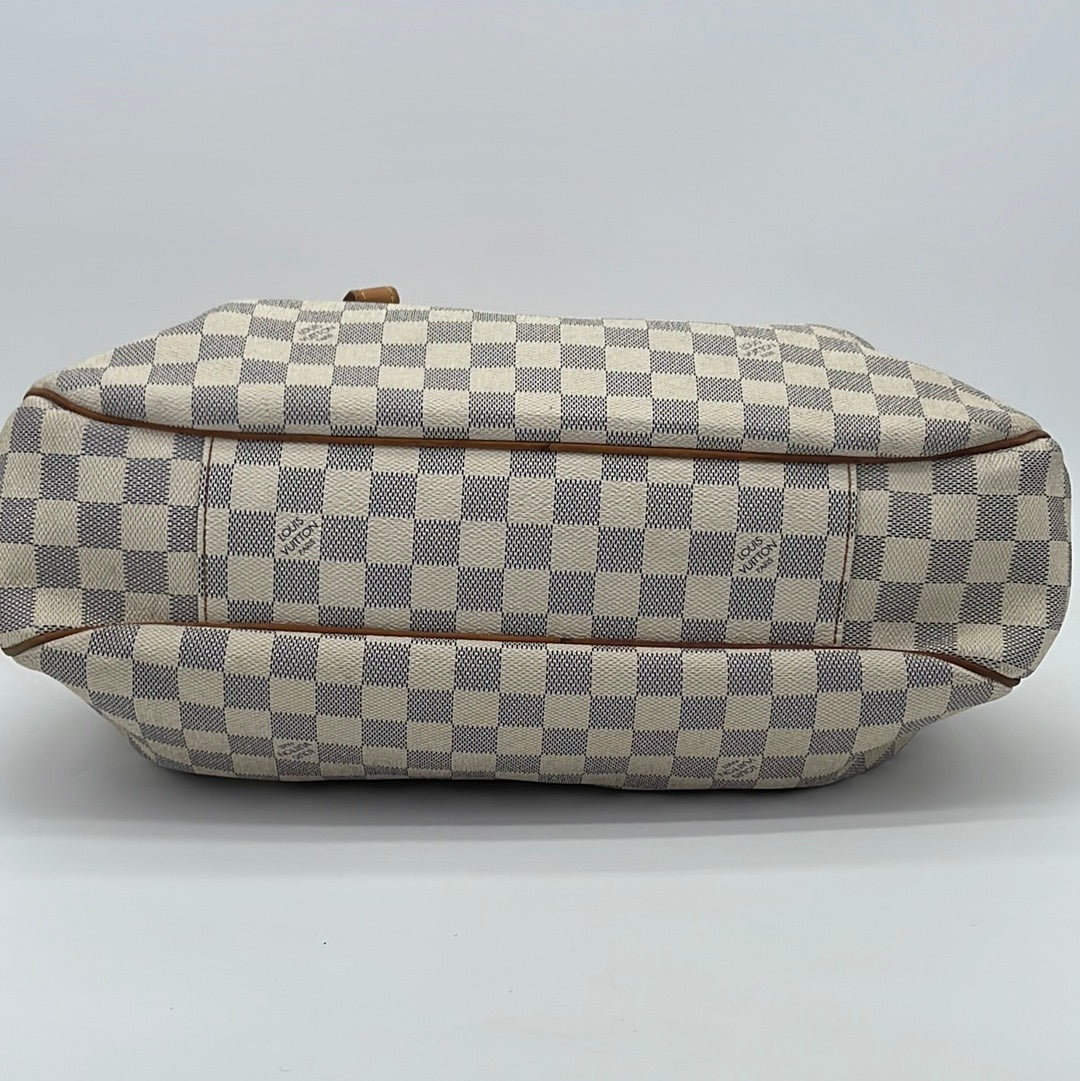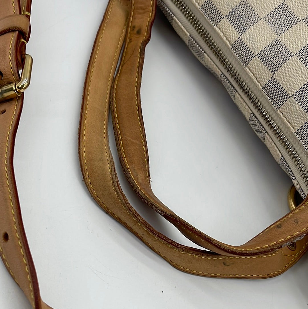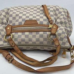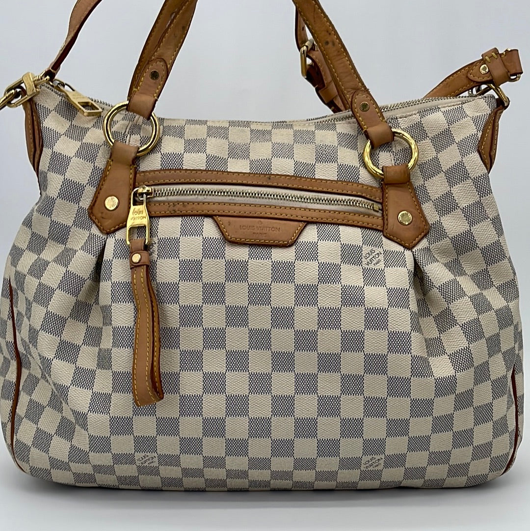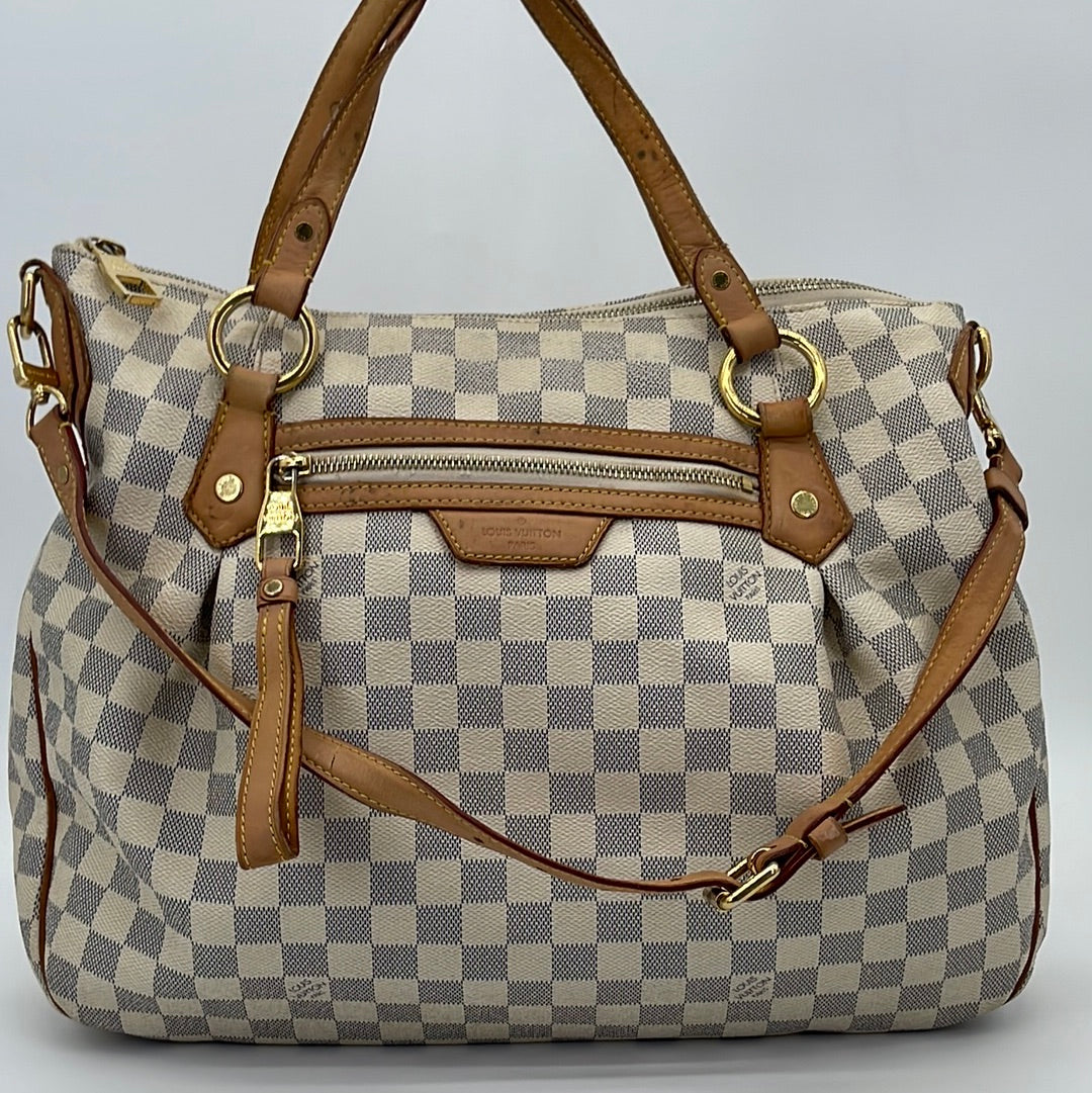 PRELOVED Louis Vuitton Damier Azur Evora MM Bag with shoulder strap.