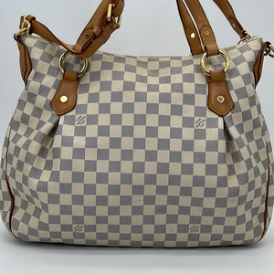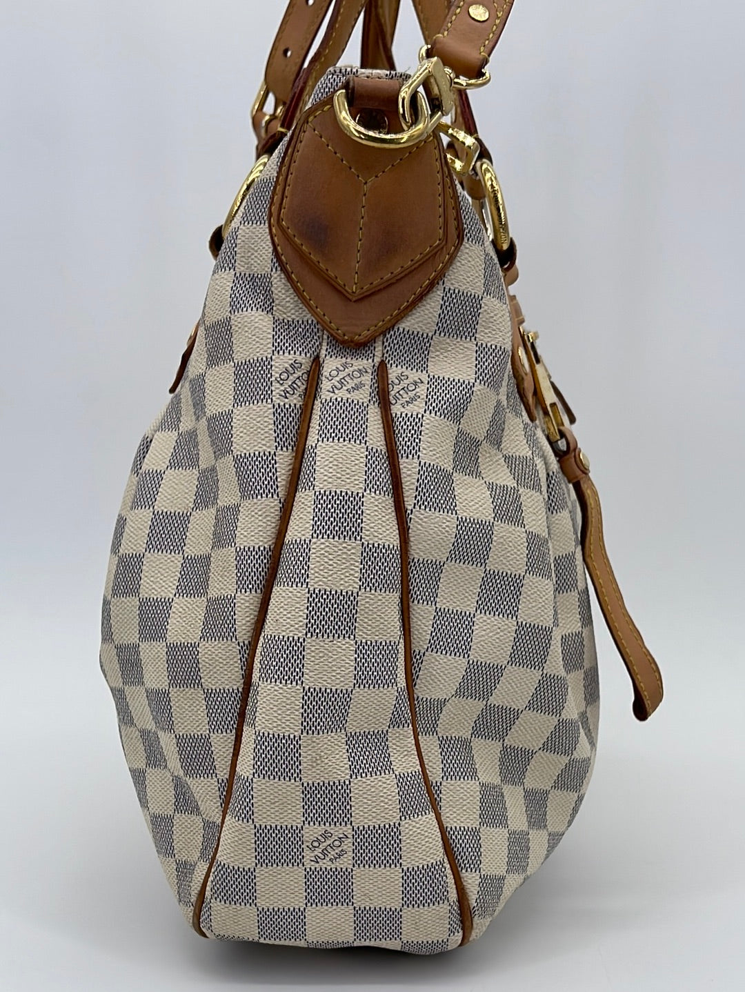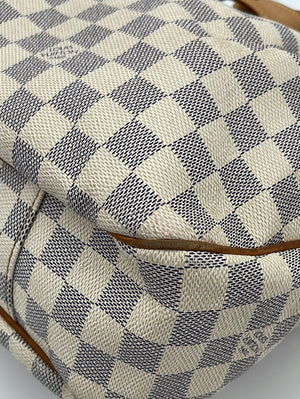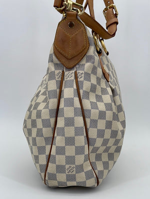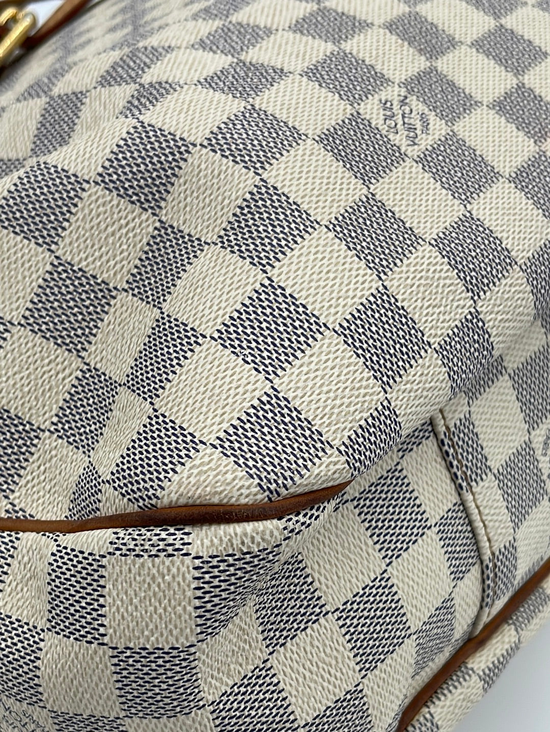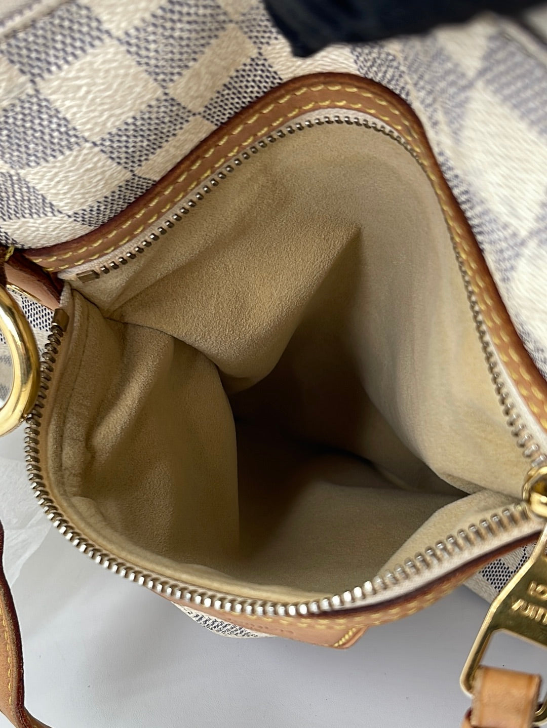 PRELOVED Louis Vuitton Damier Azur Evora MM Bag with shoulder strap.