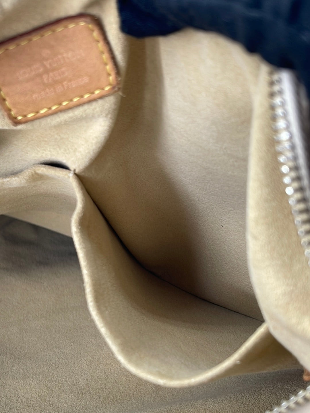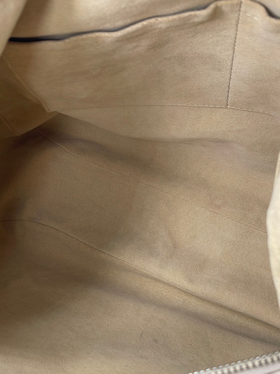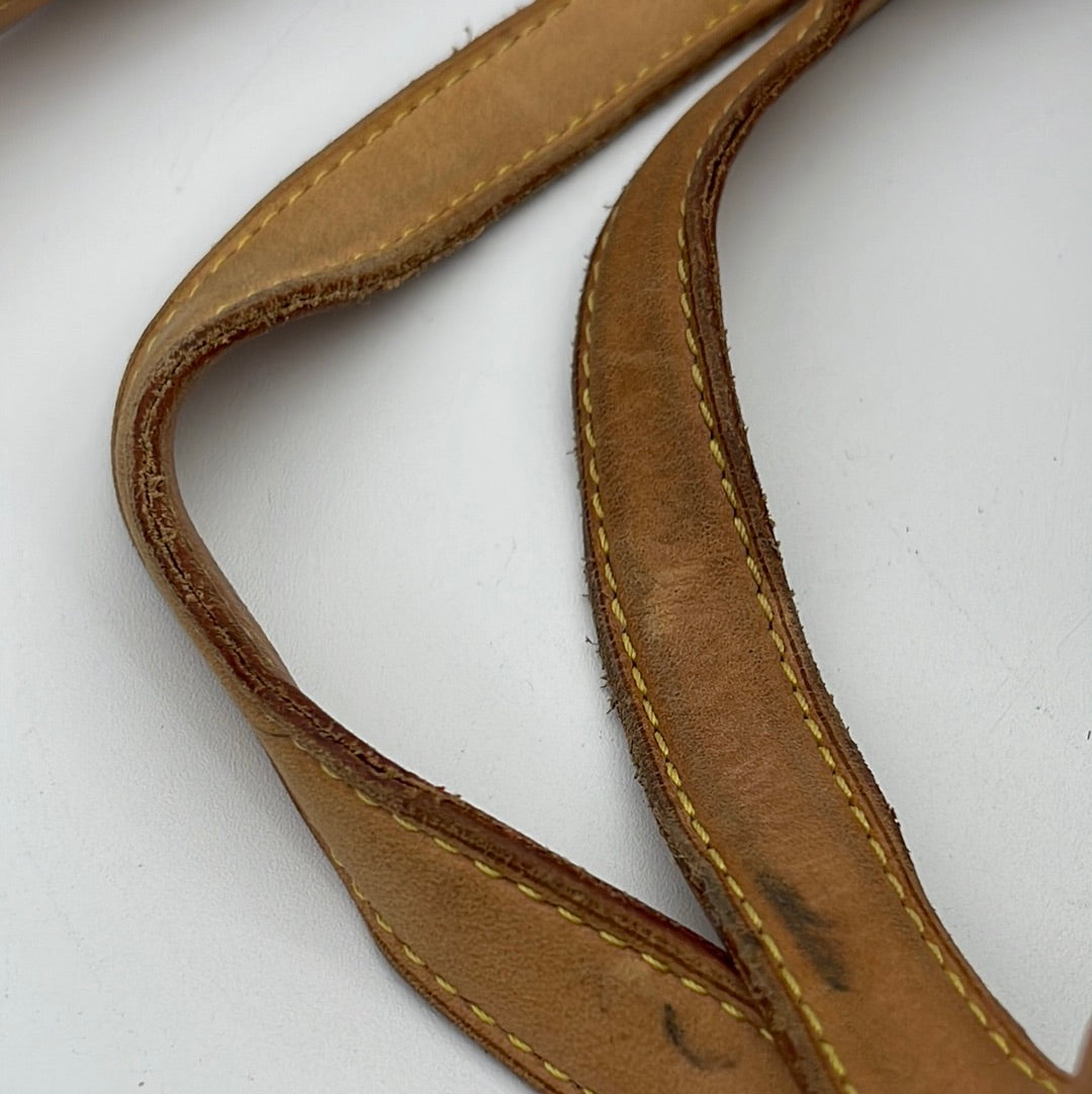 PRELOVED - Fair used condition. Exterior has moderate wear. Some wear and staining on leather trim and straps. Some rubbing corners. Interior is clean. - See photos of wear.