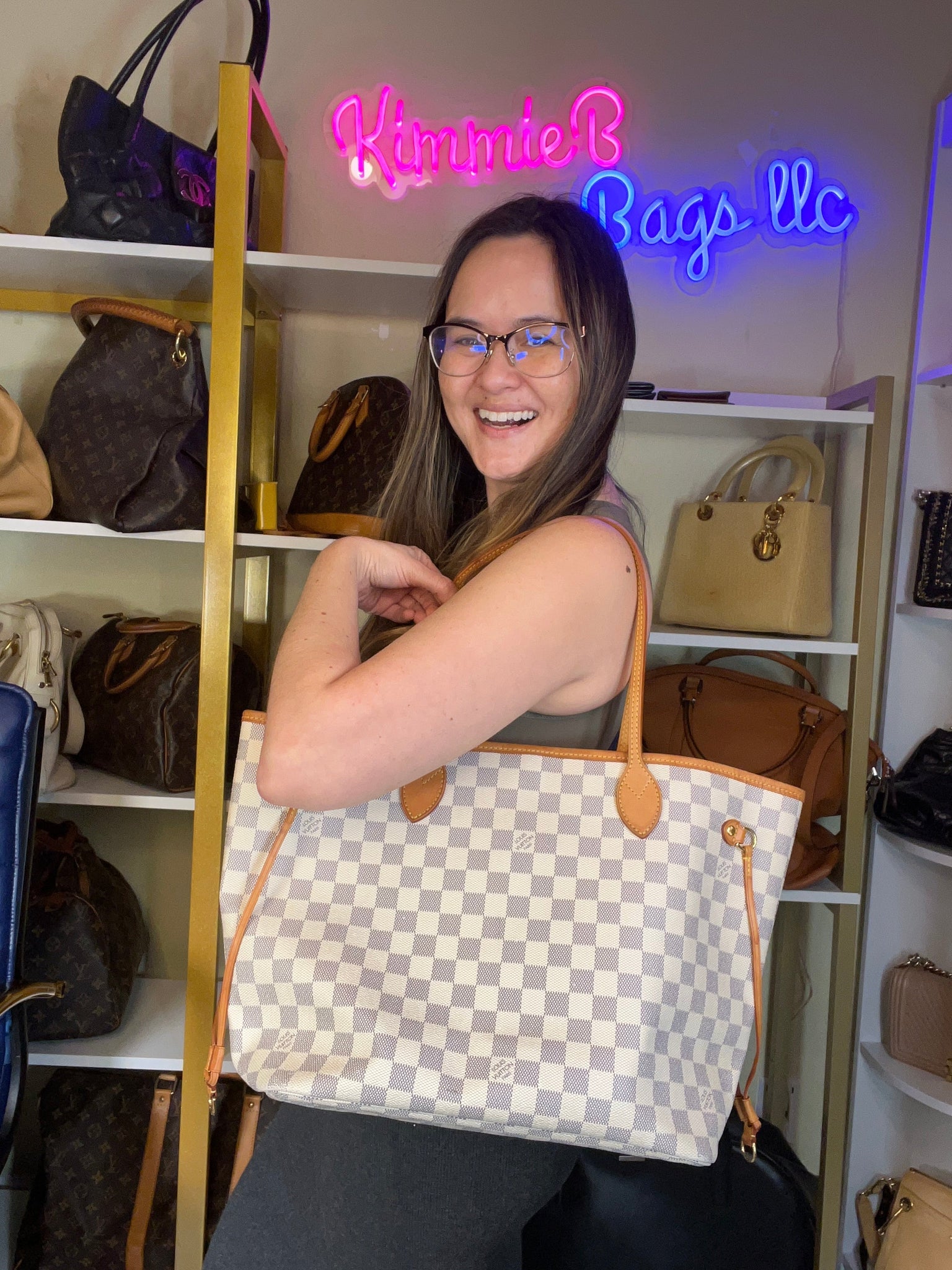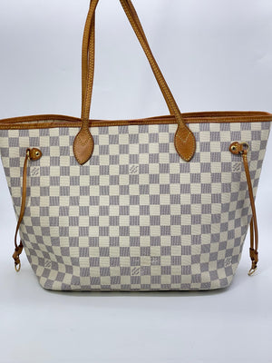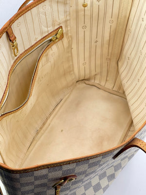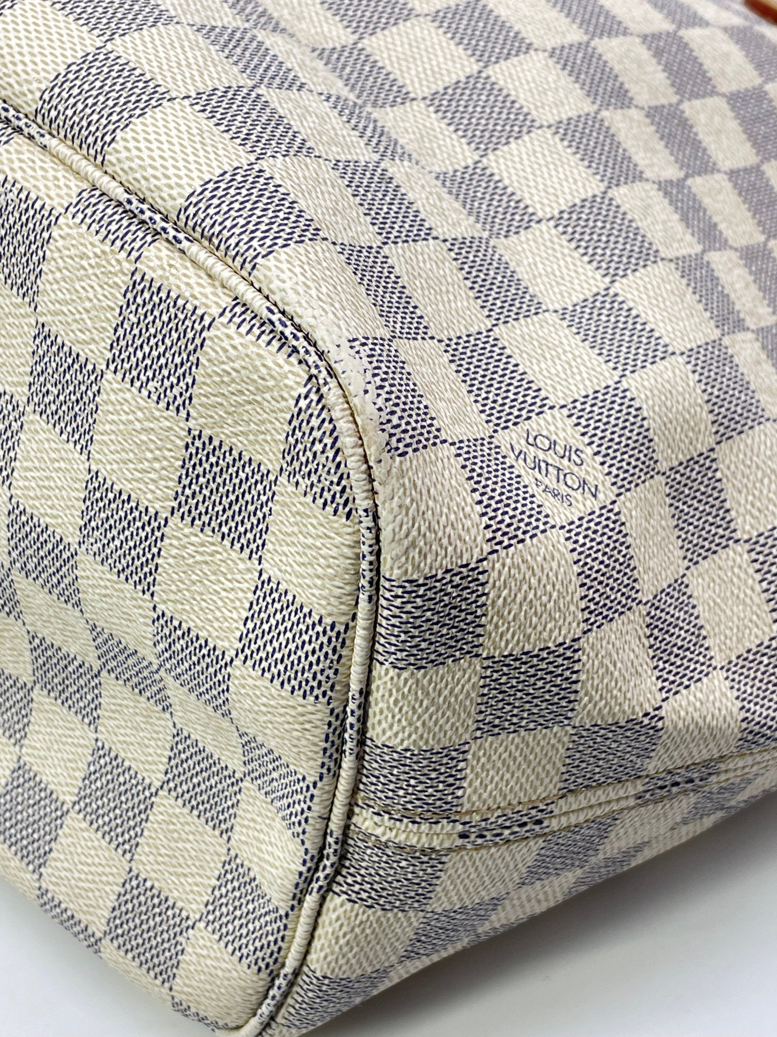 Preloved Louis Vuitton Damier Azur Canvas Neverfull MM Tote Bag.