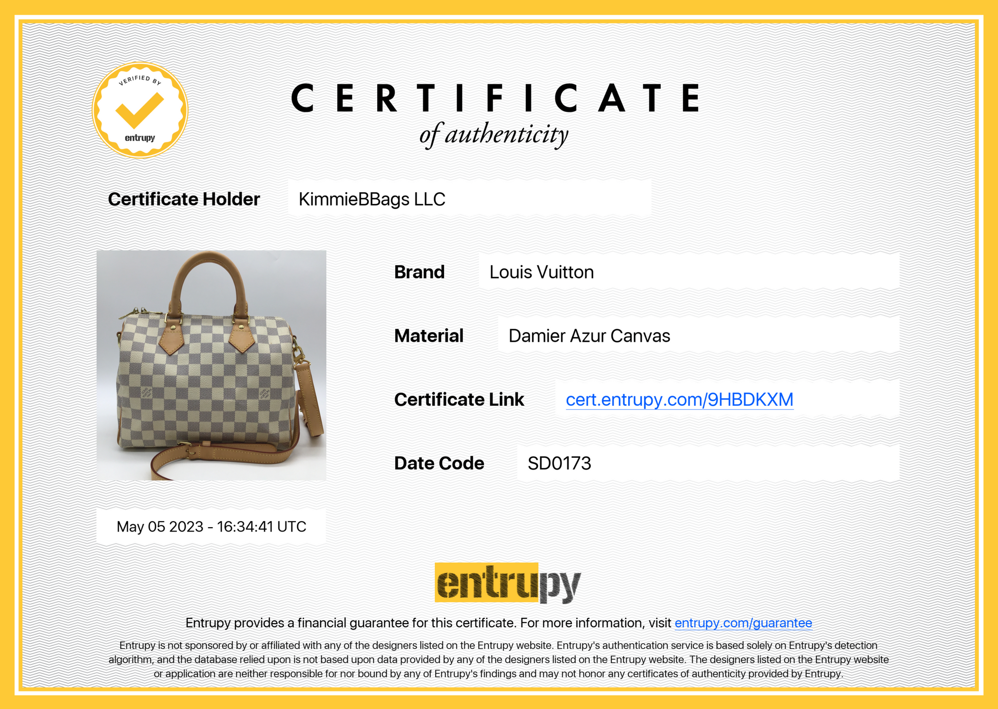Entrupy letter of Authenticity!