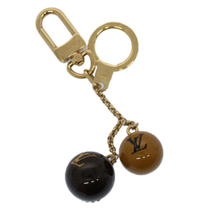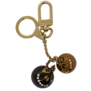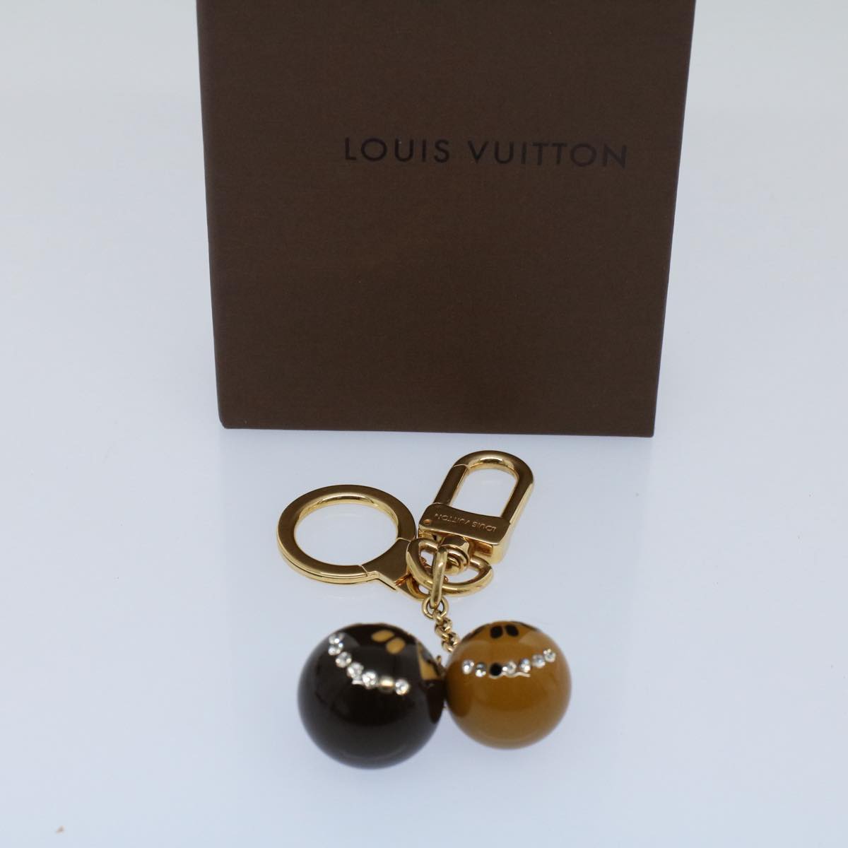 Introducing the Louis Vuitton Jack and Lucie Keychain, a sleek and functional accessory that adds a touch of luxury to your everyday essentials. Crafted with meticulous attention to detail, this key holder showcases a stylish combination of brown and gold tones in durable metal. The exterior of the key chain may show slight rubbing, which is a normal sign of use and adds character to its overall allure. One rhinestone is missing.