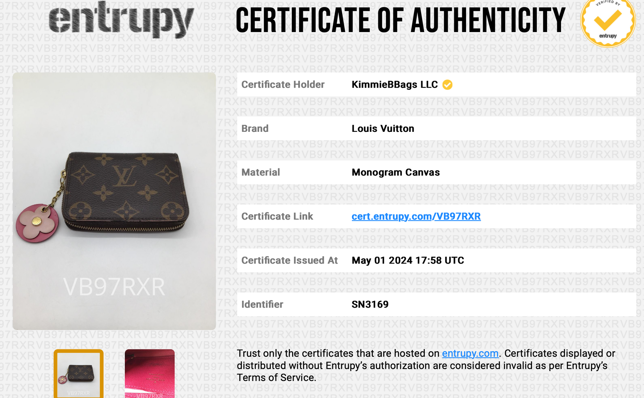 Entrupy letter of Authenticity!