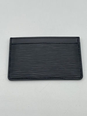PRELOVED Louis Vuitton Men's Back Epi Leather Card Holder. This simple yet chic card holder in Epi leather slips easily into a pocket. It holds credit cards, transport cards or business cards in its three slots.