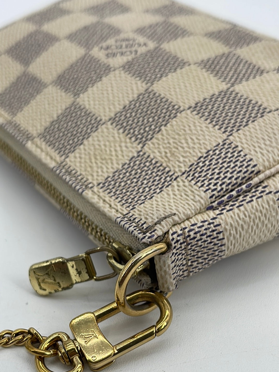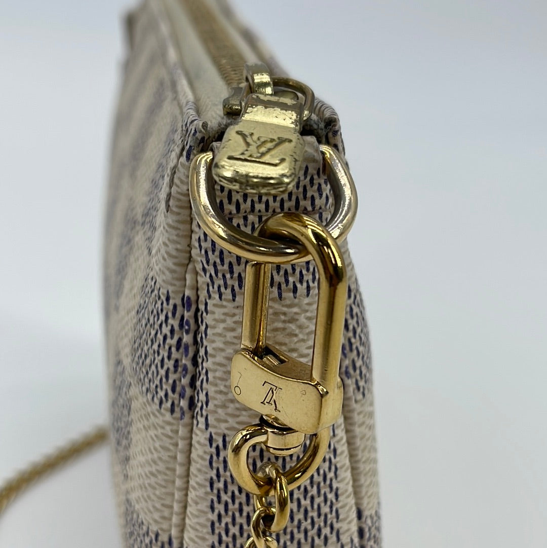 PRELOVED Louis Vuitton Mini Pochette Accessoires Damier Azur. One of Louis Vuitton most popular bags! This bag is great for holding your everyday essentials. ALWAYS SOLD OUT STYLE!