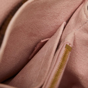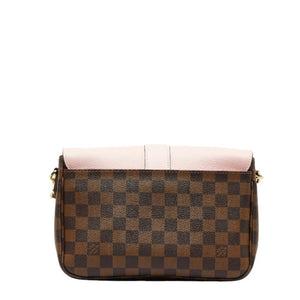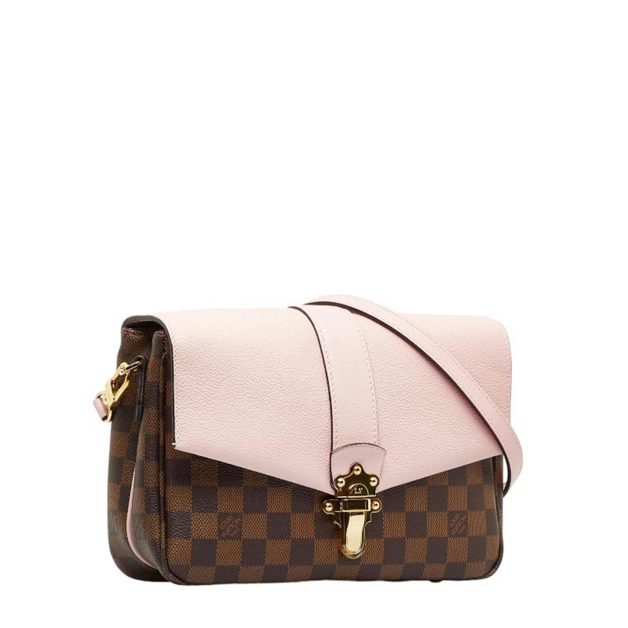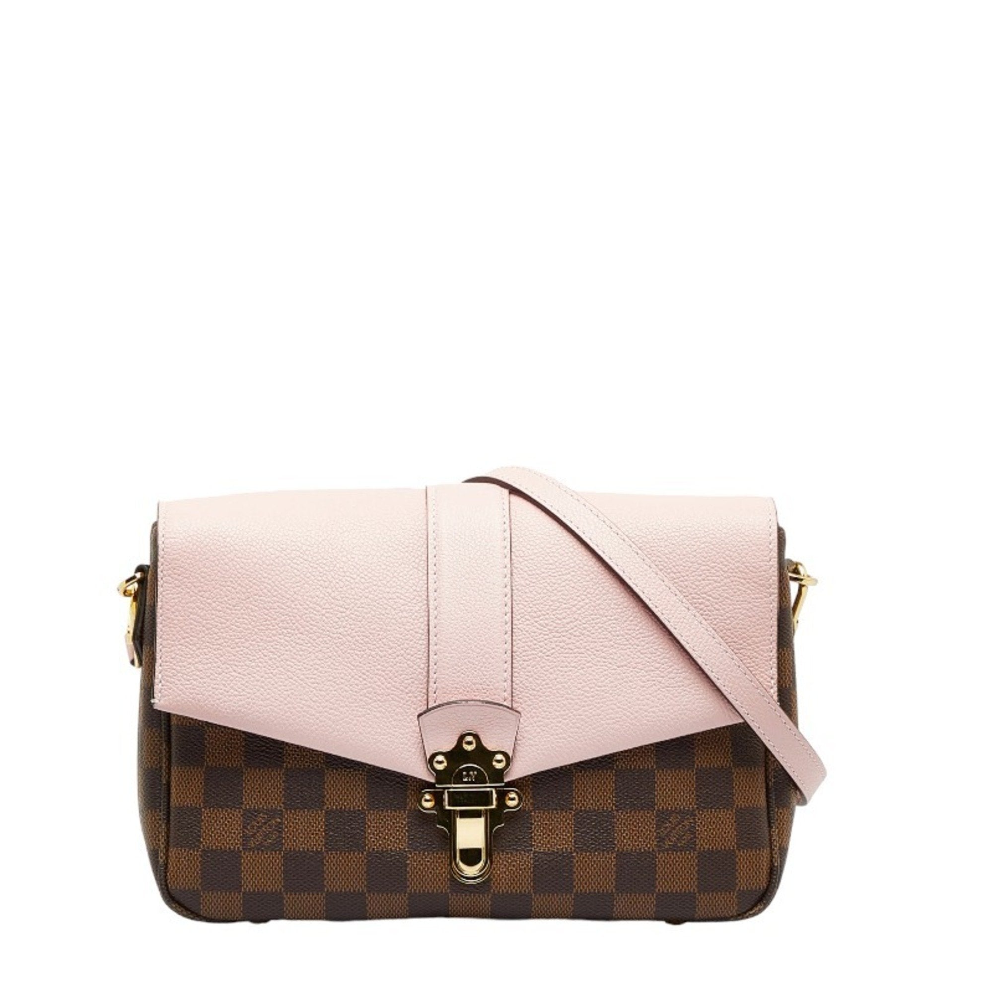 Preloved Louis Vuitton Damier Ebene Clapton Crossbody Bag with pink flap.
