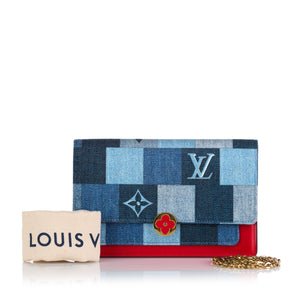 Preloved Louis Vuitton Monogram Denim Patchwork Fiore Chain Wallet