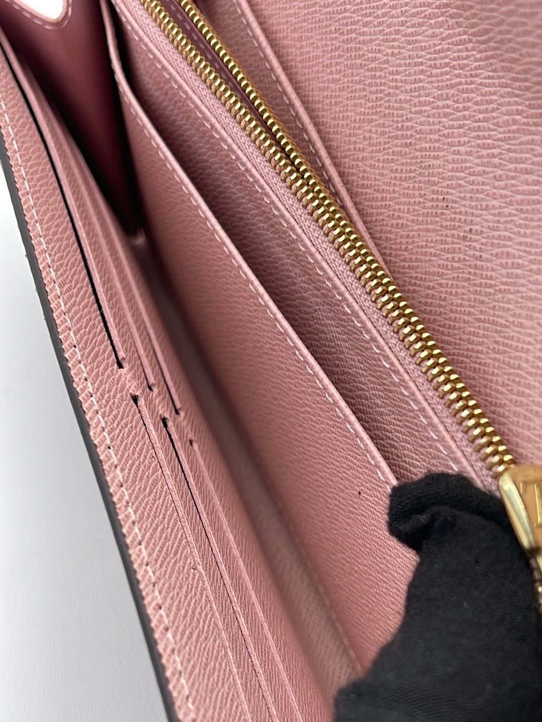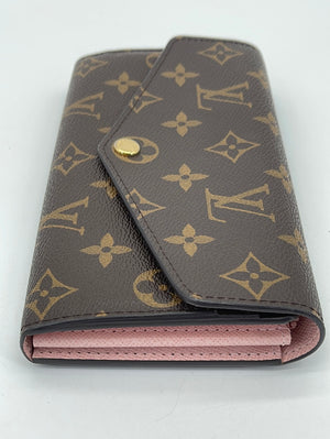 PRELOVED Louis Vuitton Monogram Sarah Long Wallet - Rose Ballerine Interior *KM Initials Inside*