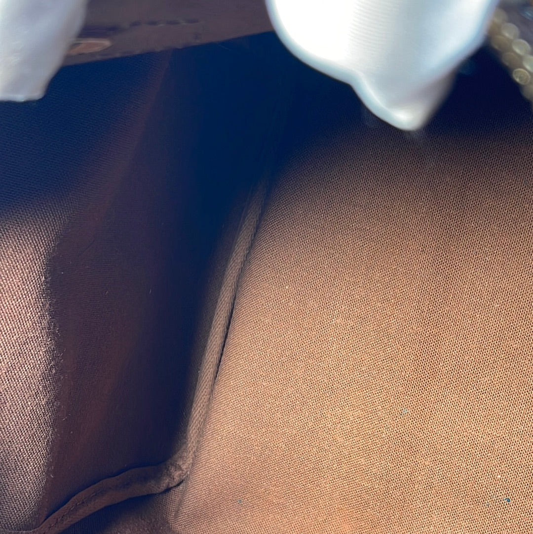 Preloved- Good Vintage Condition. The exterior canvas is clean, and in great condition. The interior is clean. The hardware shows signs of heavy use. The lock is missing the key, and is attached to the side leather end tab. - See Photos!
