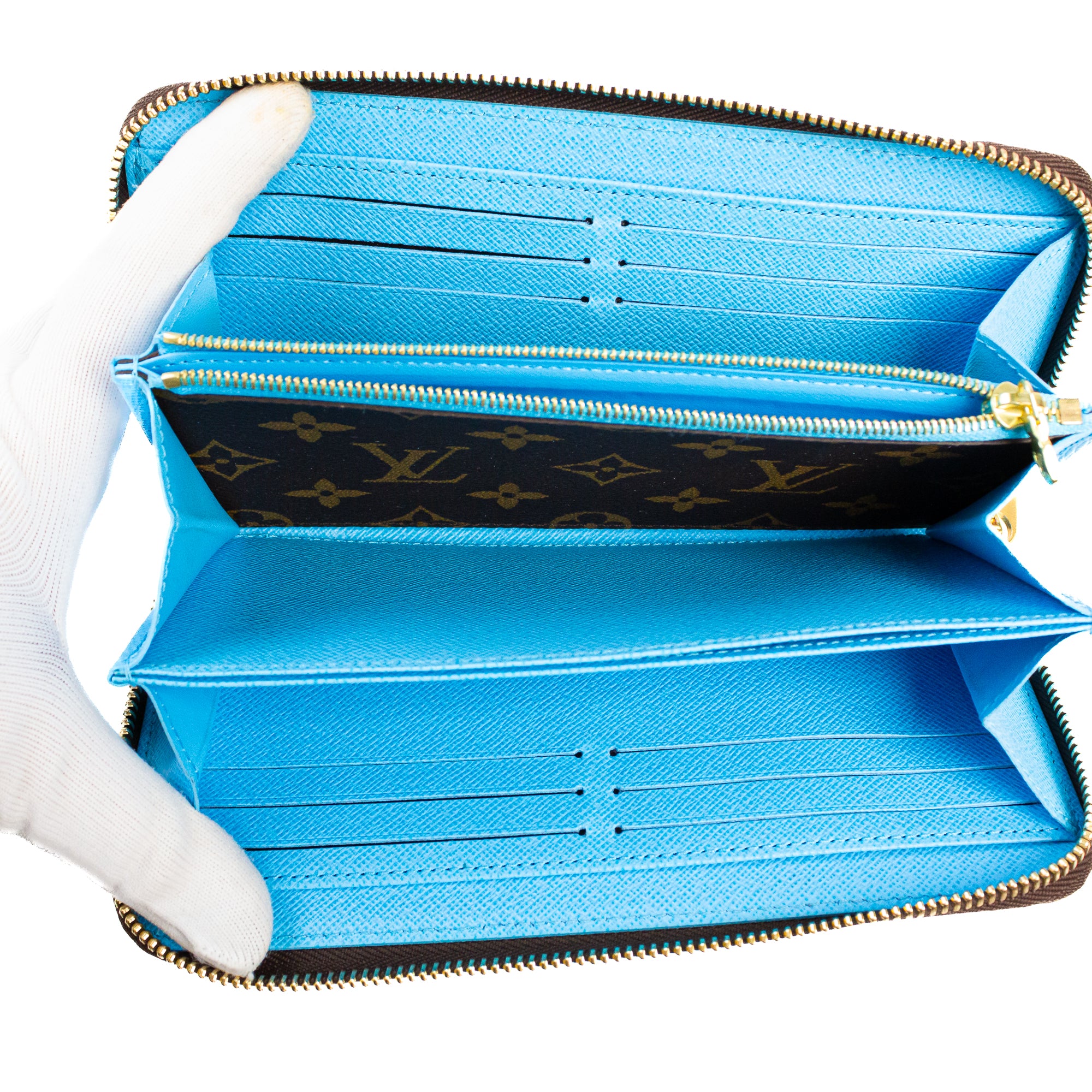 Preloved Louis Vuitton Monogram Vivienne Zippy Wallet- Blue Interior.