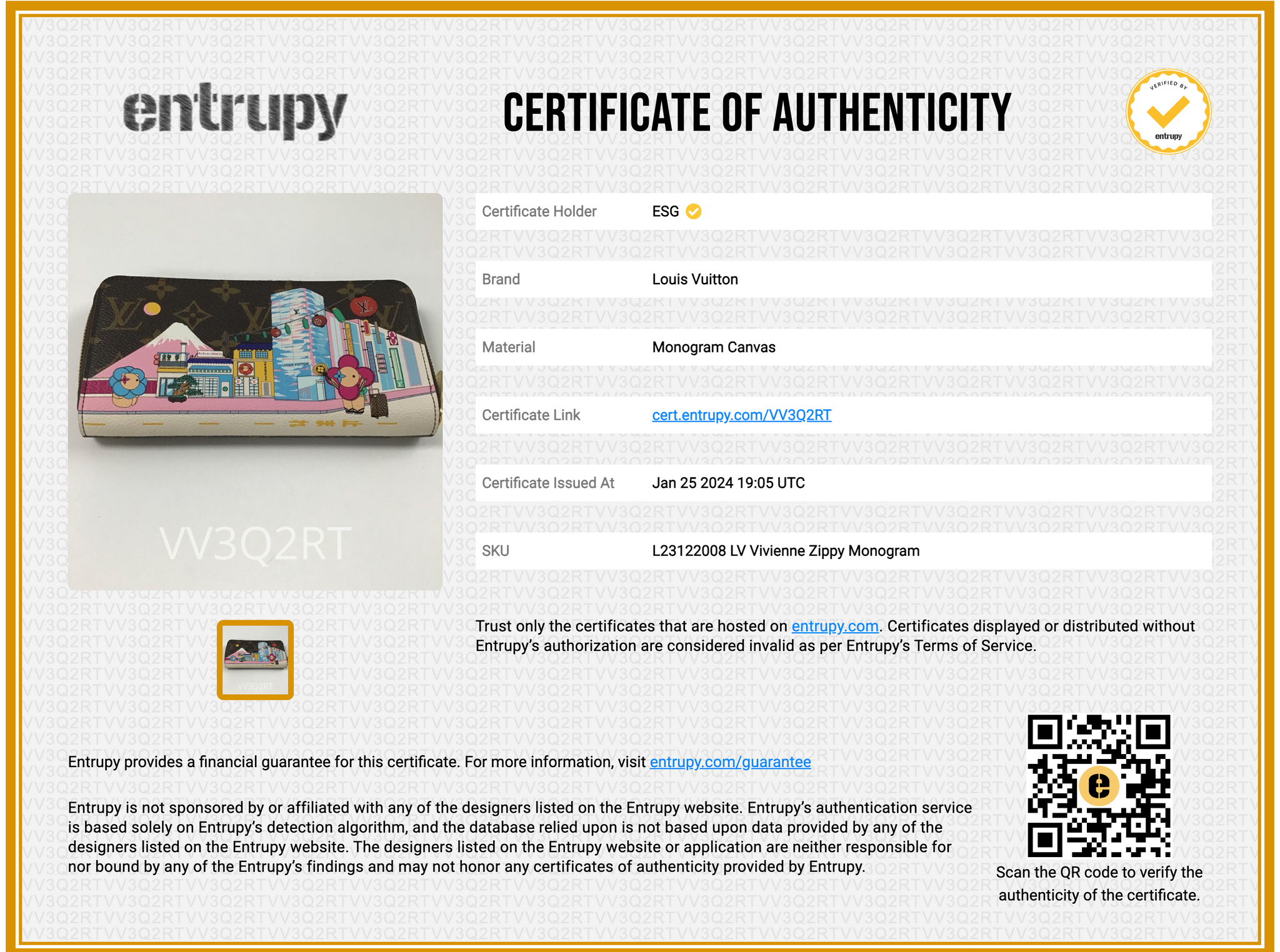 Entrupy letter of Authenticity!