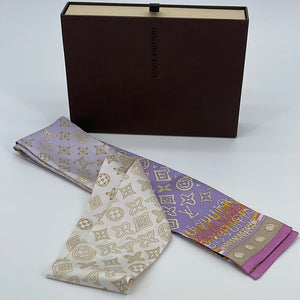 PRELOVED Louis Vuitton Pink, Beige and Purple Silk Scarf. 100% Silk