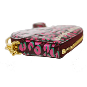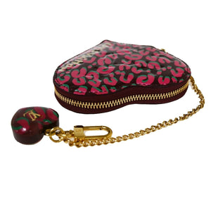 Louis Vuitton's Porte monnaie coeur Leopard Coin Case Purse in pink, crafted in patent leather, is a delightful accessory that combines style and functionality. The heart-shaped design adds a playful touch, while the leopard motif enhances its chic, on-trend appeal.