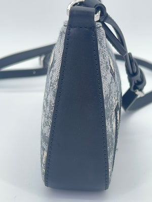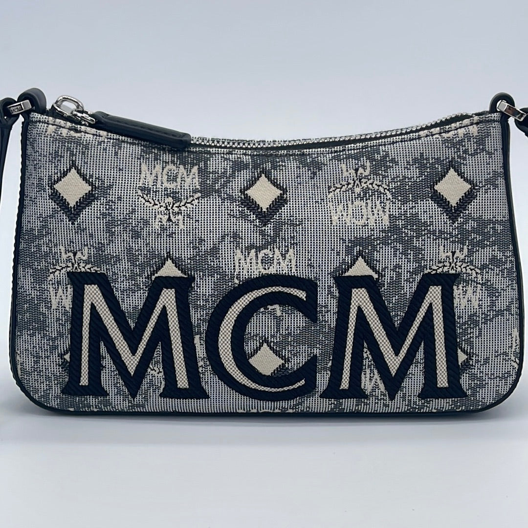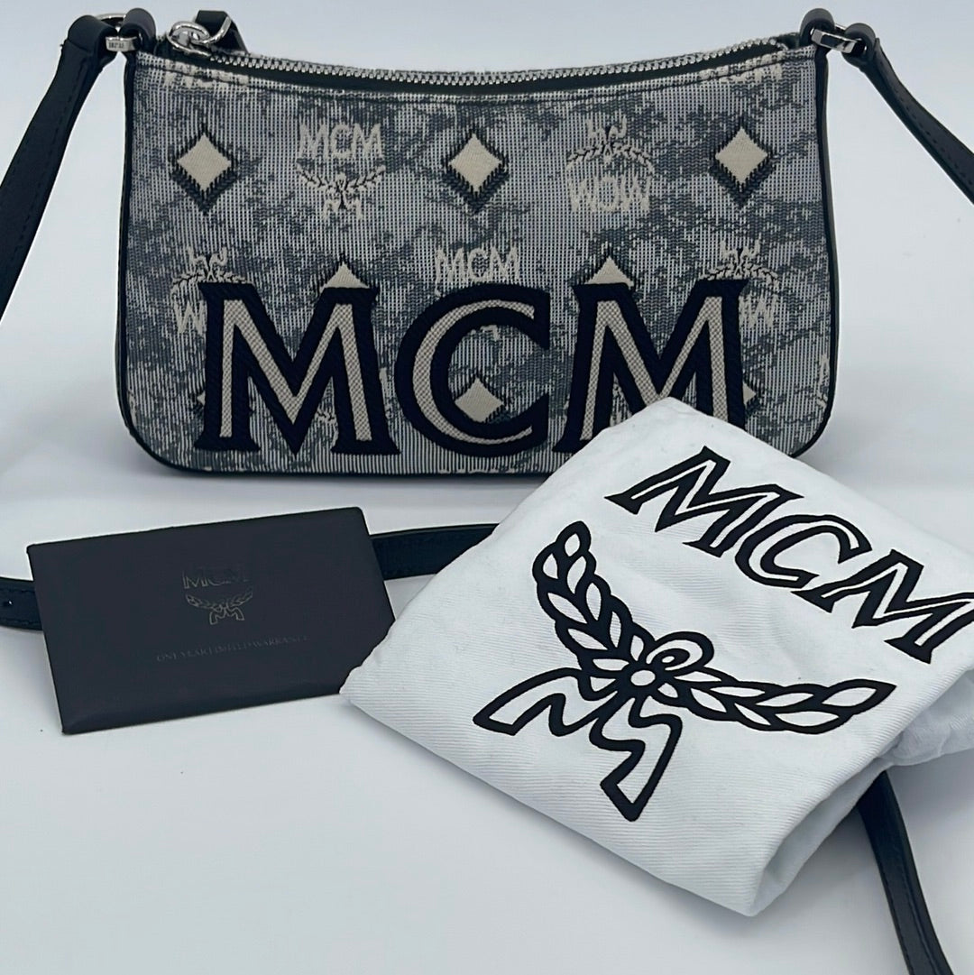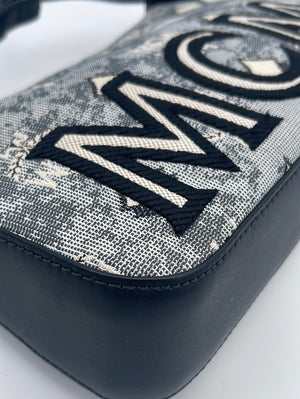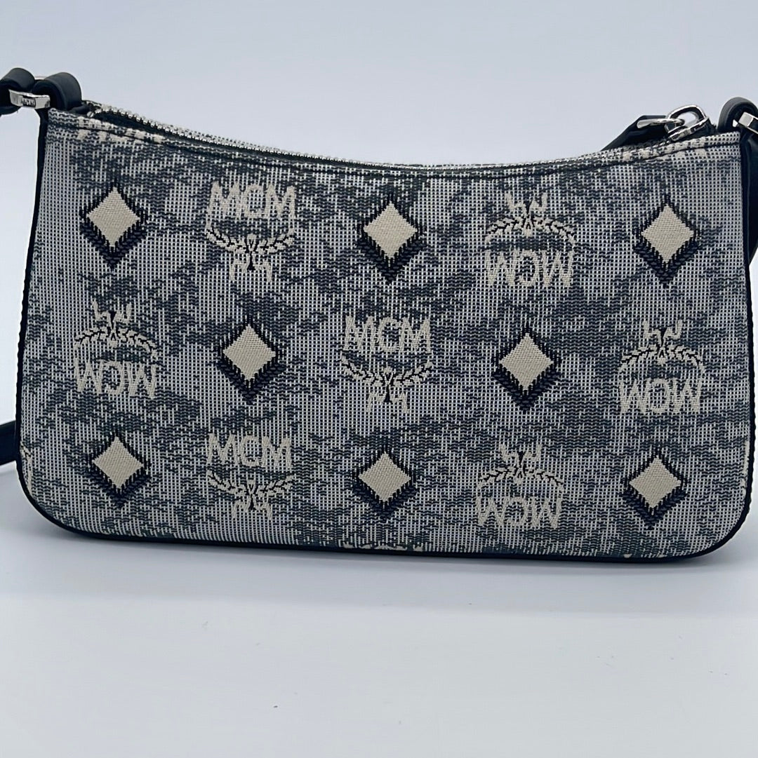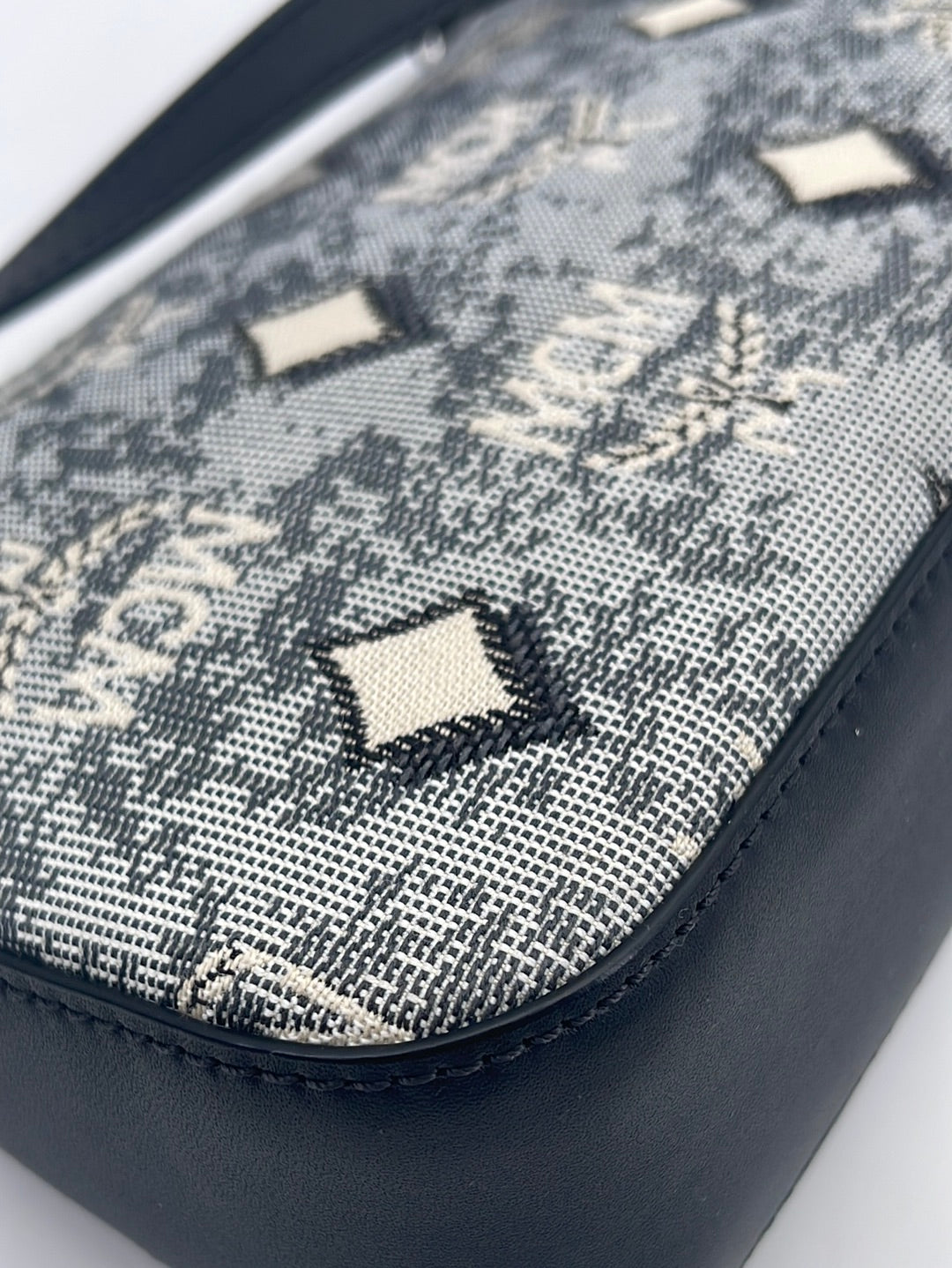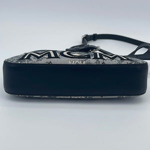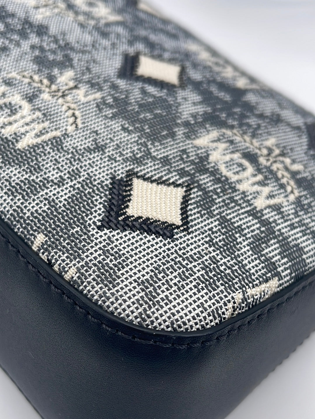 PRELOVED MCM Navy Black and Blue Woven Canvas Mini Crossbody Handbag