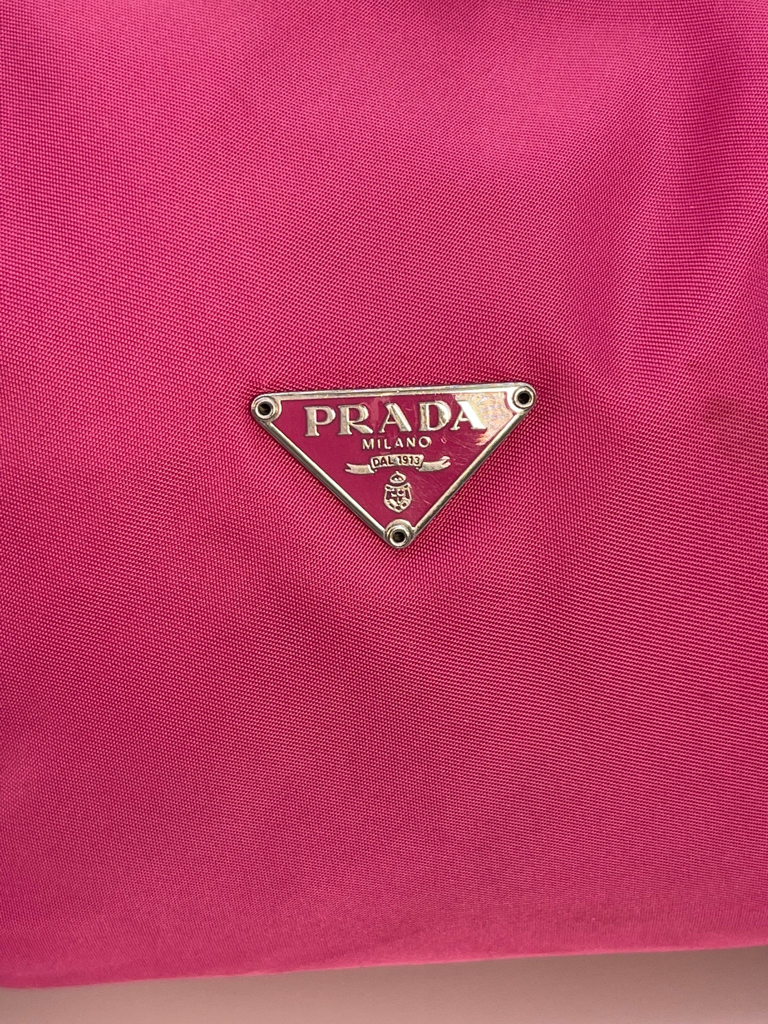 Preloved Prada Pink Leather and Nylon Hand Bag