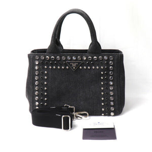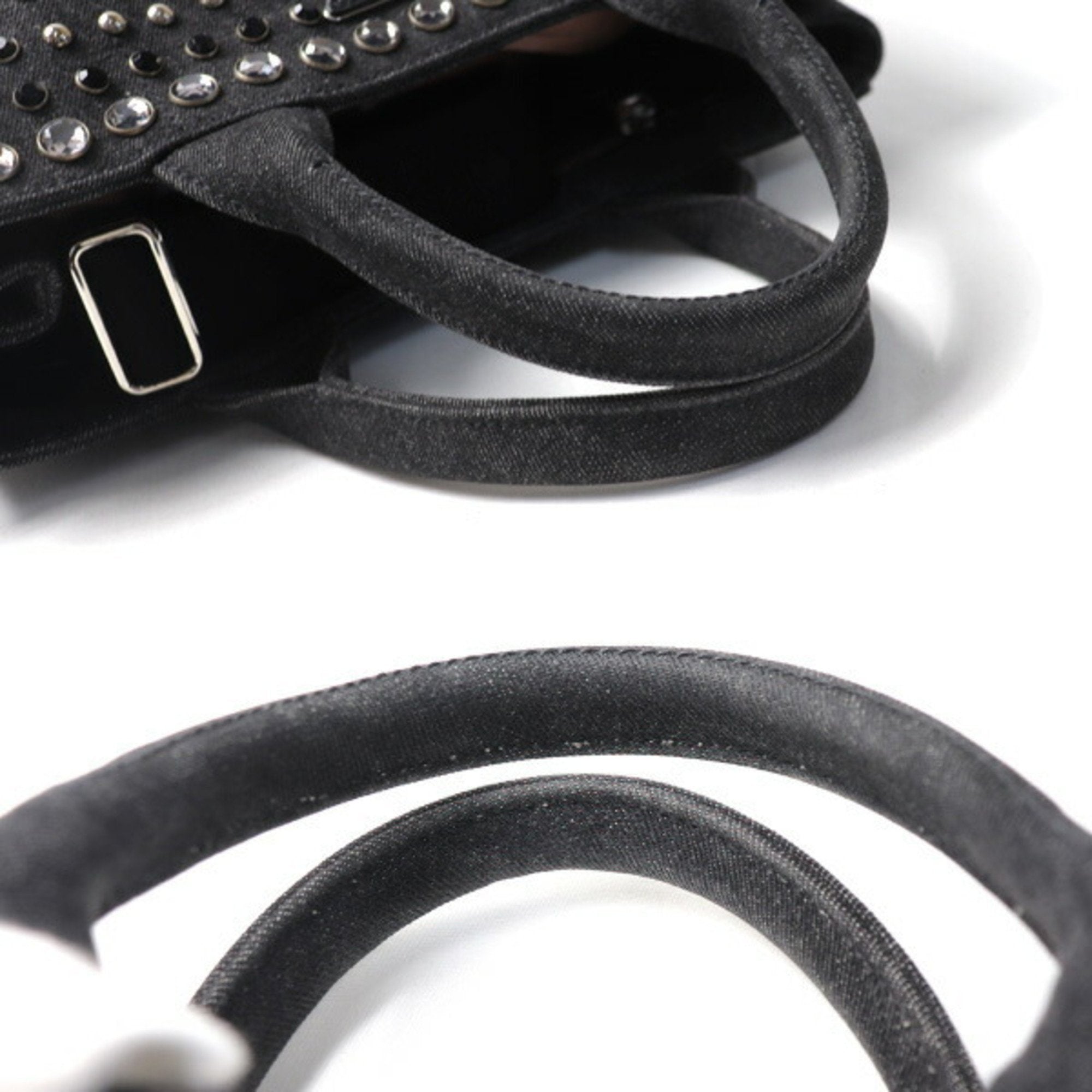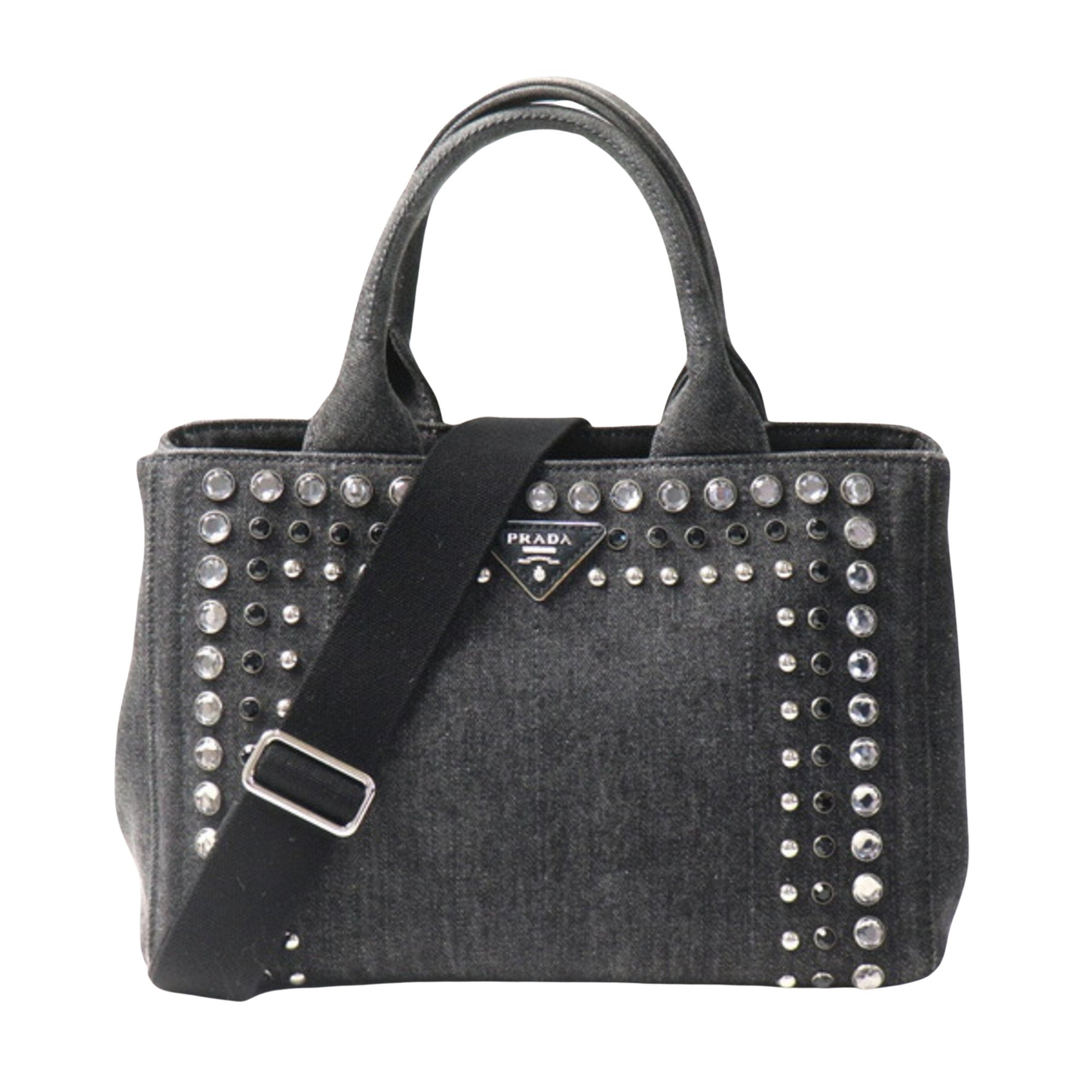 Preloved PRADA Rhinestone Embellished Denim Canapa Convertible Tote